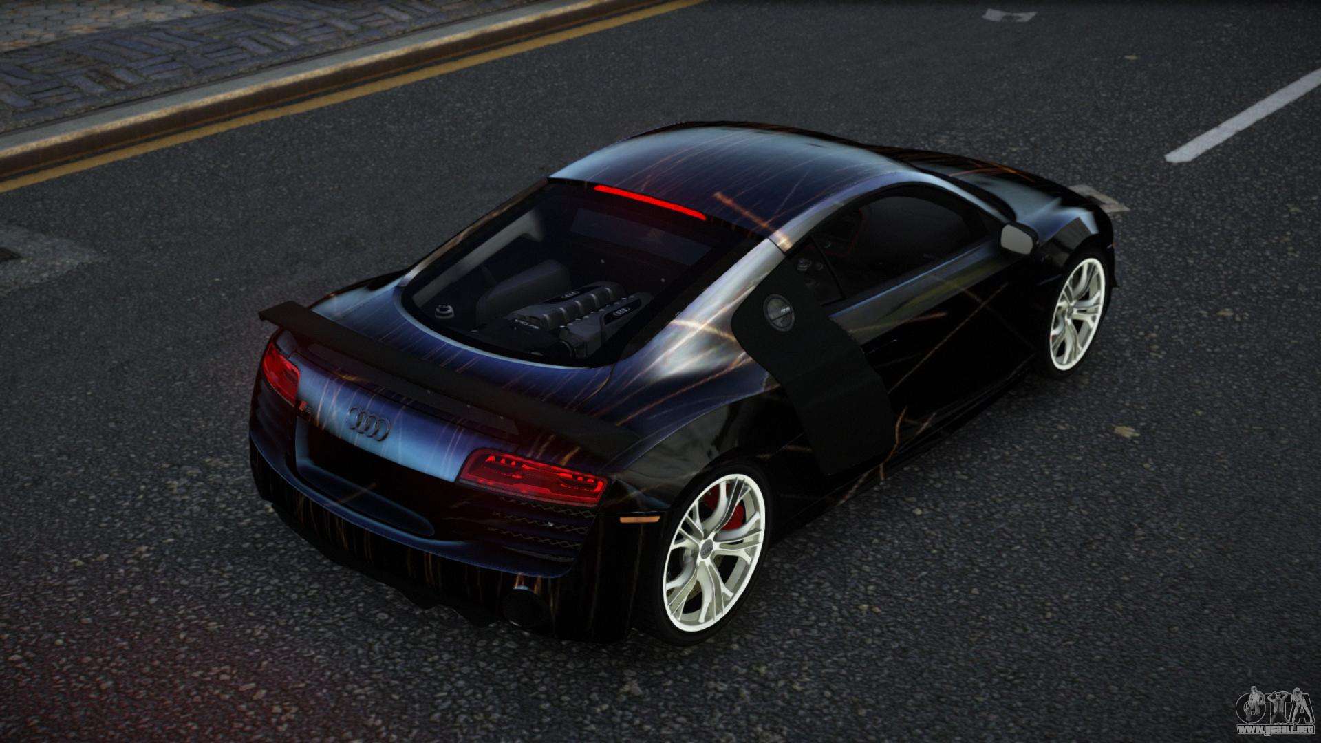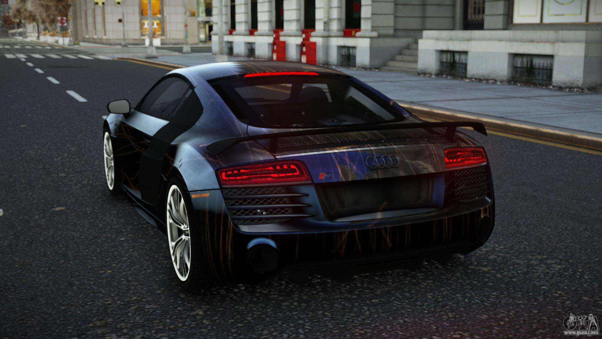 Puedes descargar el mod para Audi R8 Katian S5 para GTA 4 gratis haciendo clic en el enlace de abajo. Instalación automática, por defecto para reemplazar la Banshee, o con la ayuda del instalador puedes elegir cualquier otro coche estándar del juego.