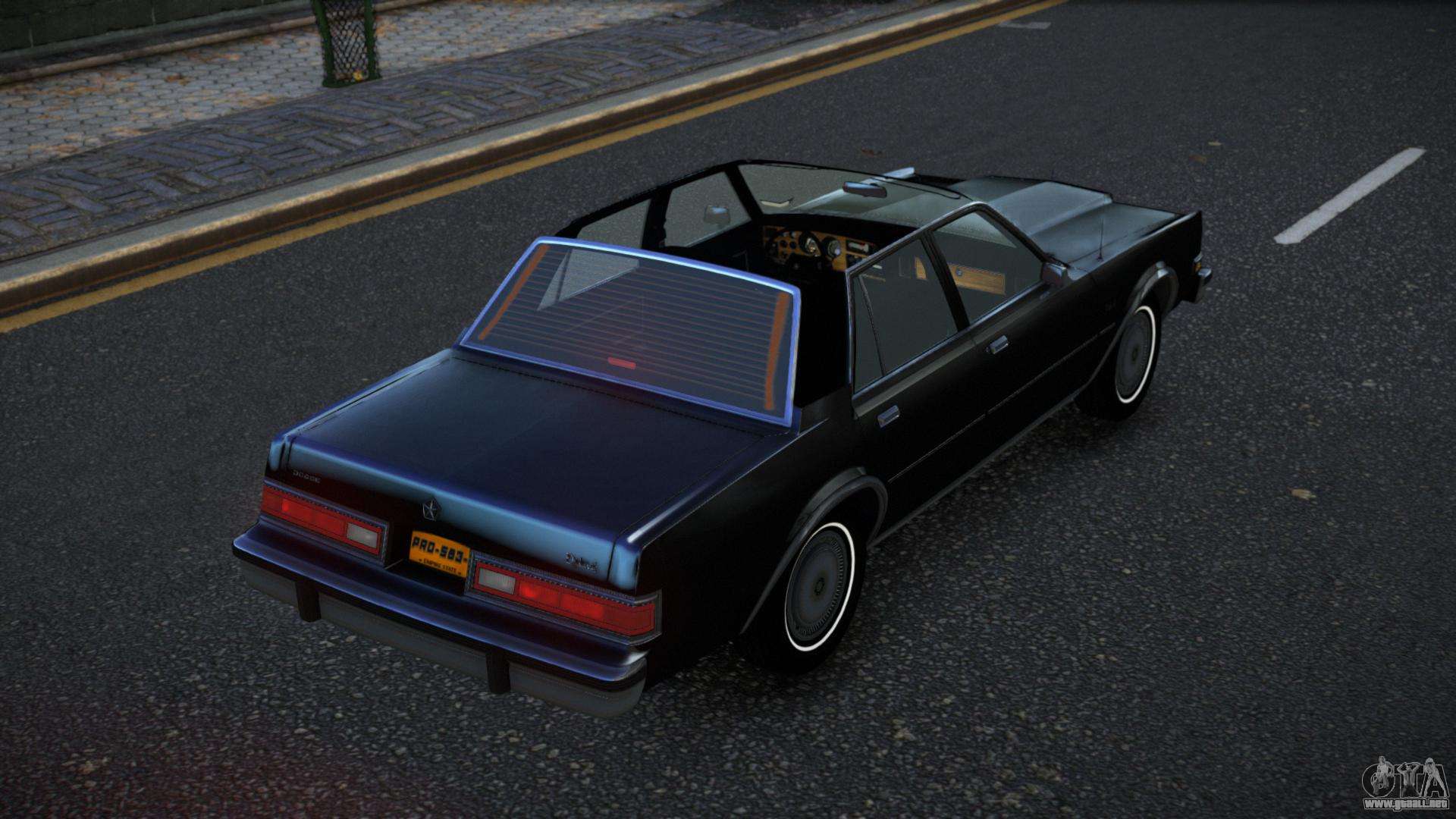 No te niegues el placer, sigue los enlaces de abajo y descarga el mod Dodge Diplomat Yinar para GTA 4. La instalación automática en dos clics, por defecto, reemplazará al esperanto. Y además, gracias a nuestro instalador, puedes elegir qué coche estándar de juego quieres mejorar.