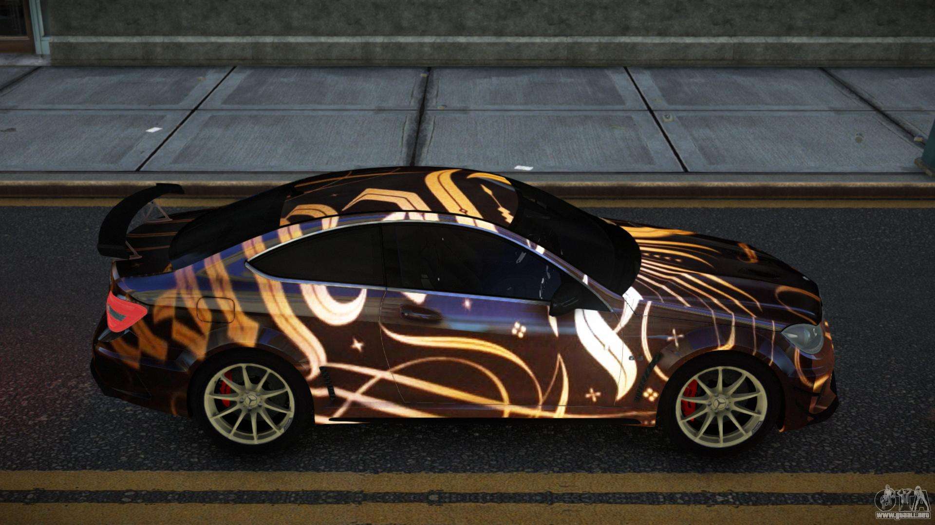 El Mercedes-Benz C63 AMG Nomah S3 modificado para GTA 4 se puede descargar a continuación en los enlaces. La modificación se instala automáticamente por defecto para reemplazar la Banshee, y con la ayuda de nuestro instalador también puedes sustituirla por cualquier vehículo estándar del juego.
