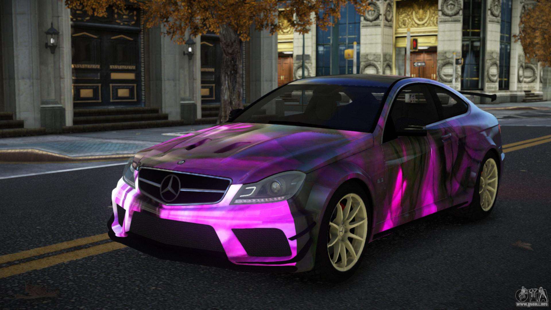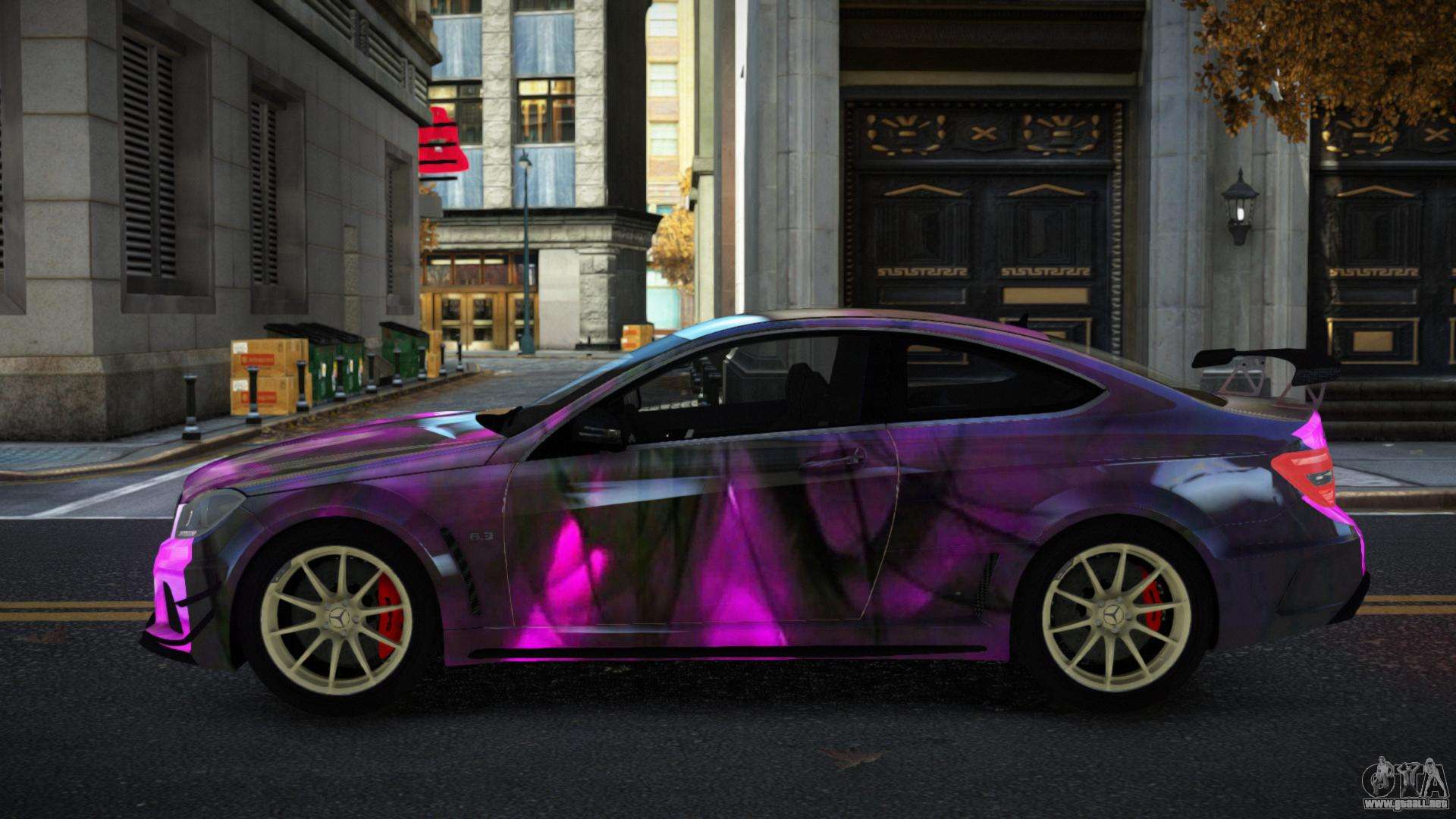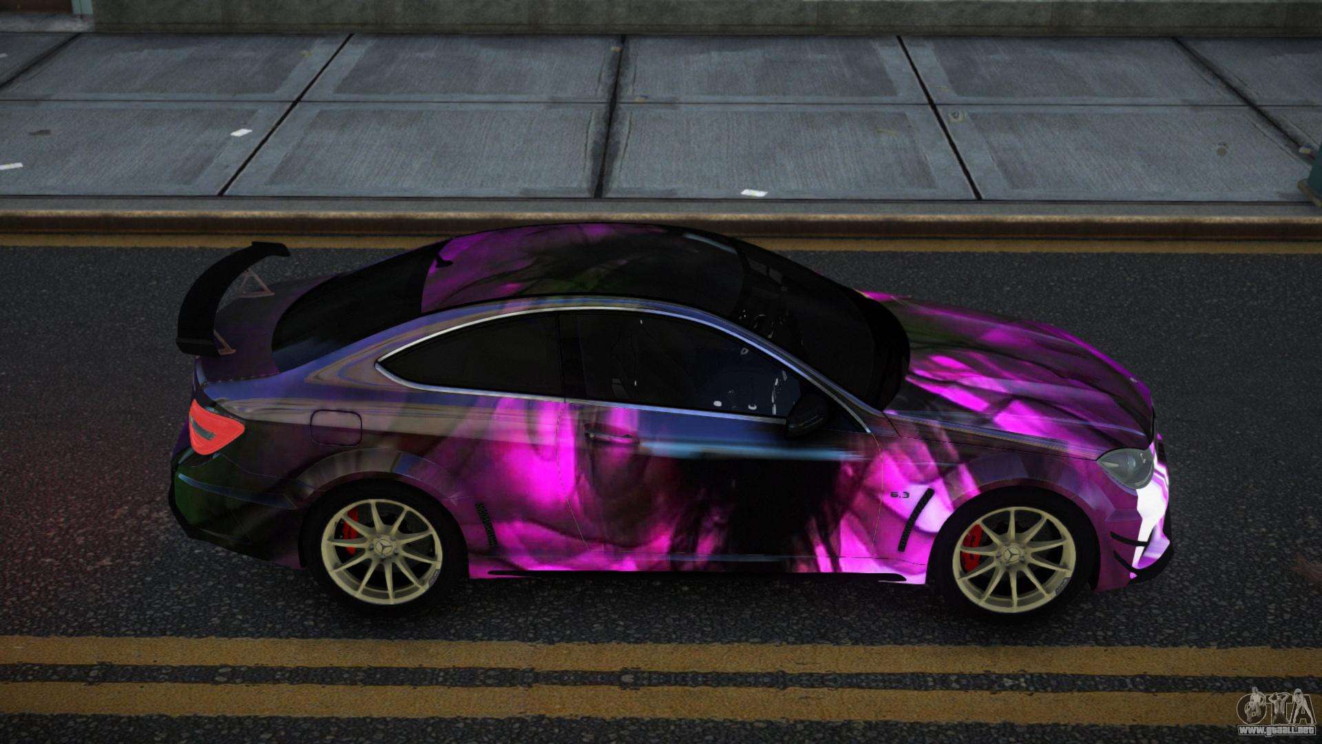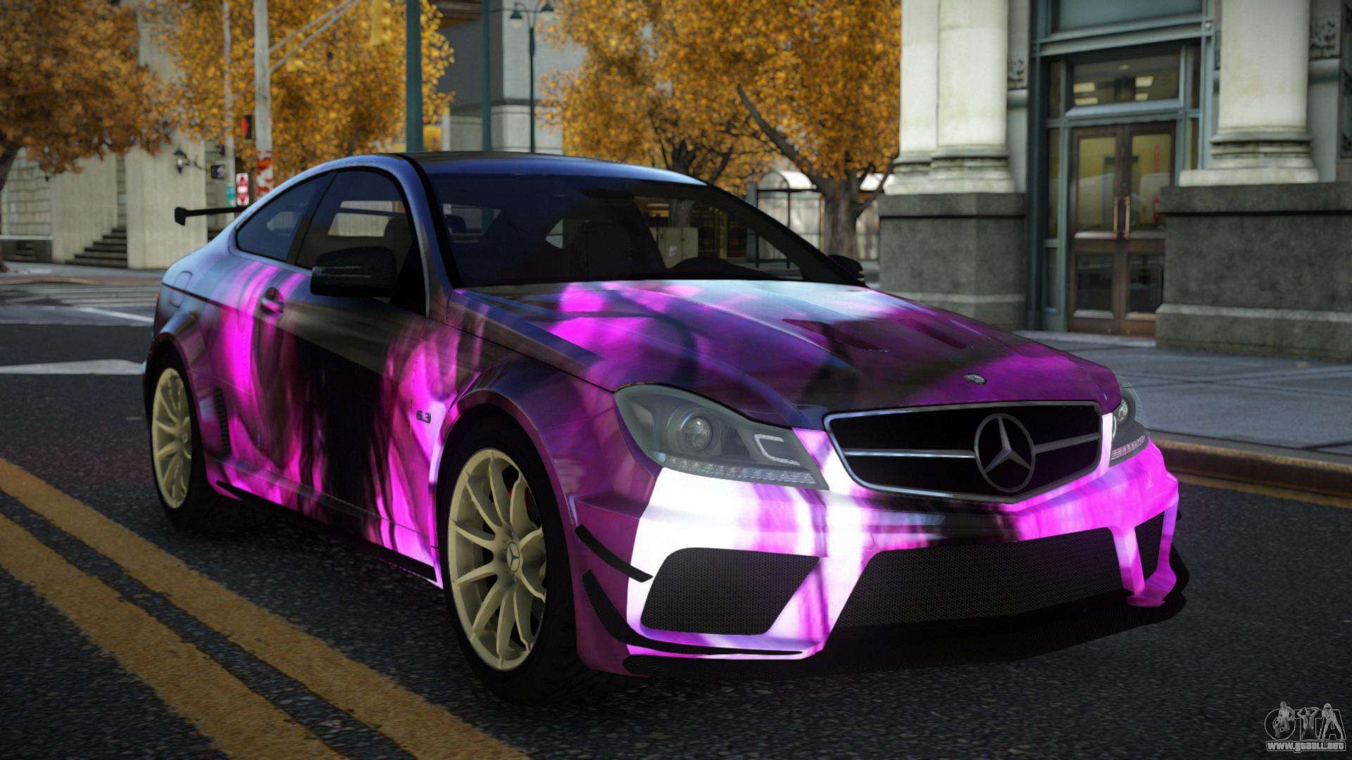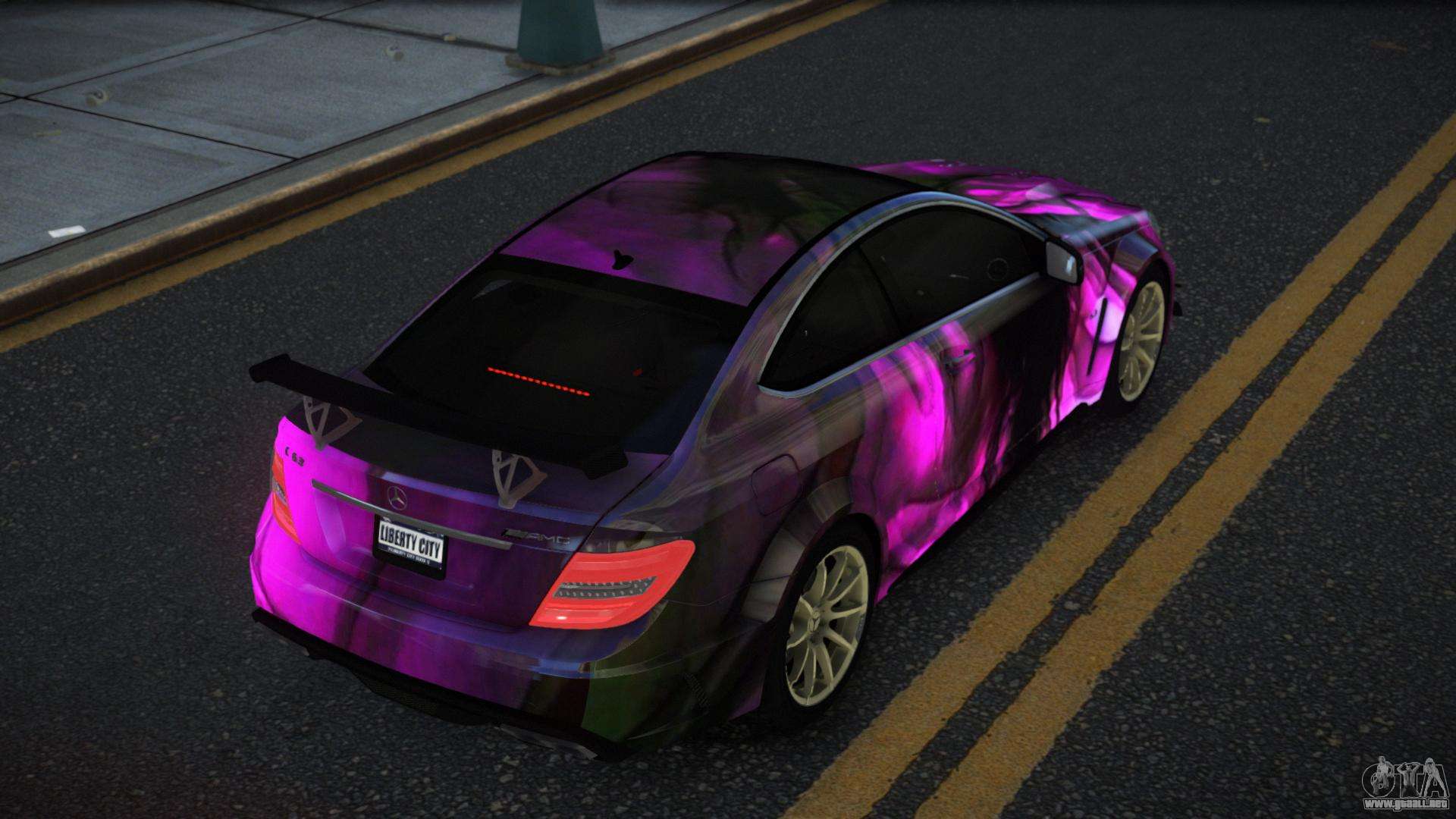 El Mercedes-Benz C63 AMG Nomah S13 modificado para GTA 4 se puede descargar a continuación en los enlaces. La modificación se instala automáticamente por defecto para reemplazar la Banshee, y con la ayuda de nuestro instalador también puedes sustituirla por cualquier vehículo estándar del juego.