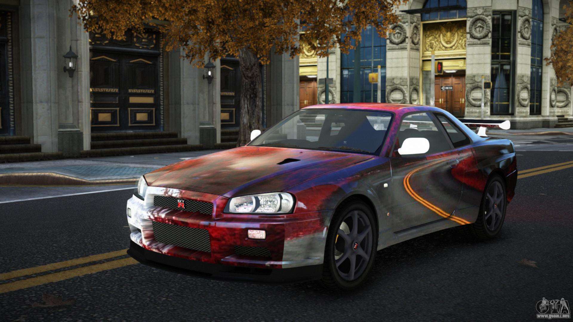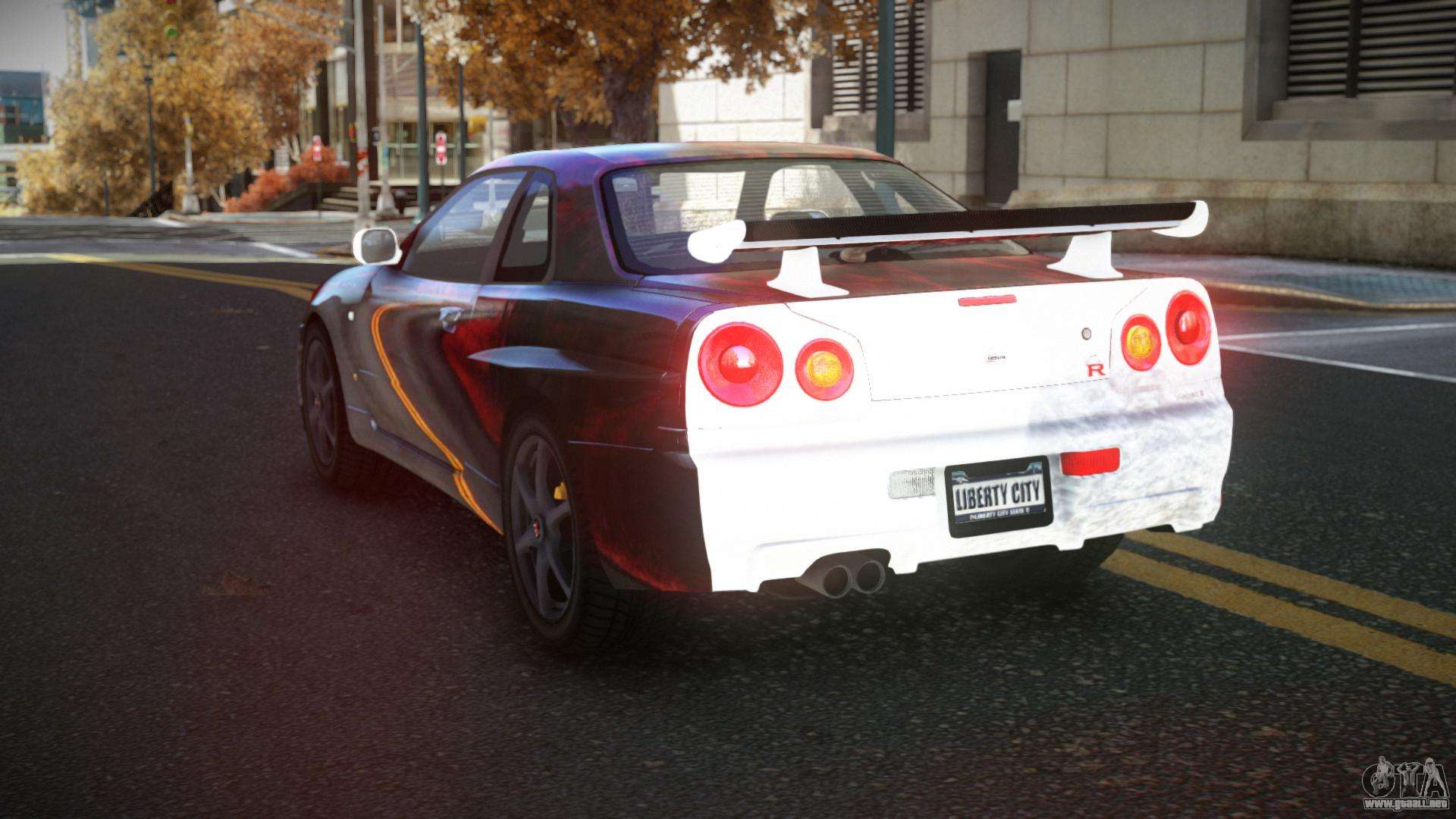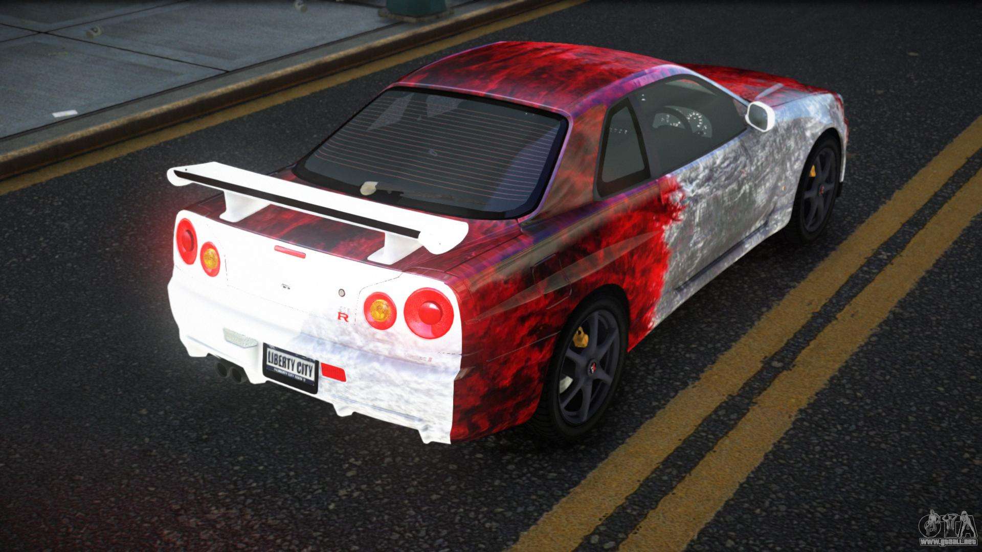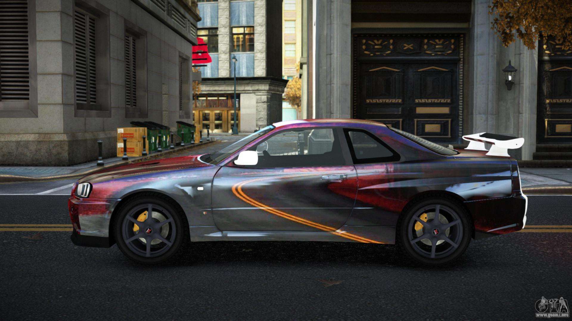 Puedes apreciar todo el encanto del coche descargando el mod Nissan Skyline R34 Gaselly S10 para GTA 4 haciendo clic en los enlaces de abajo. El mod se instala automáticamente en dos clics, por defecto reemplaza a Feltzer, o elige cualquier otro vehículo del juego que quieras transformar.