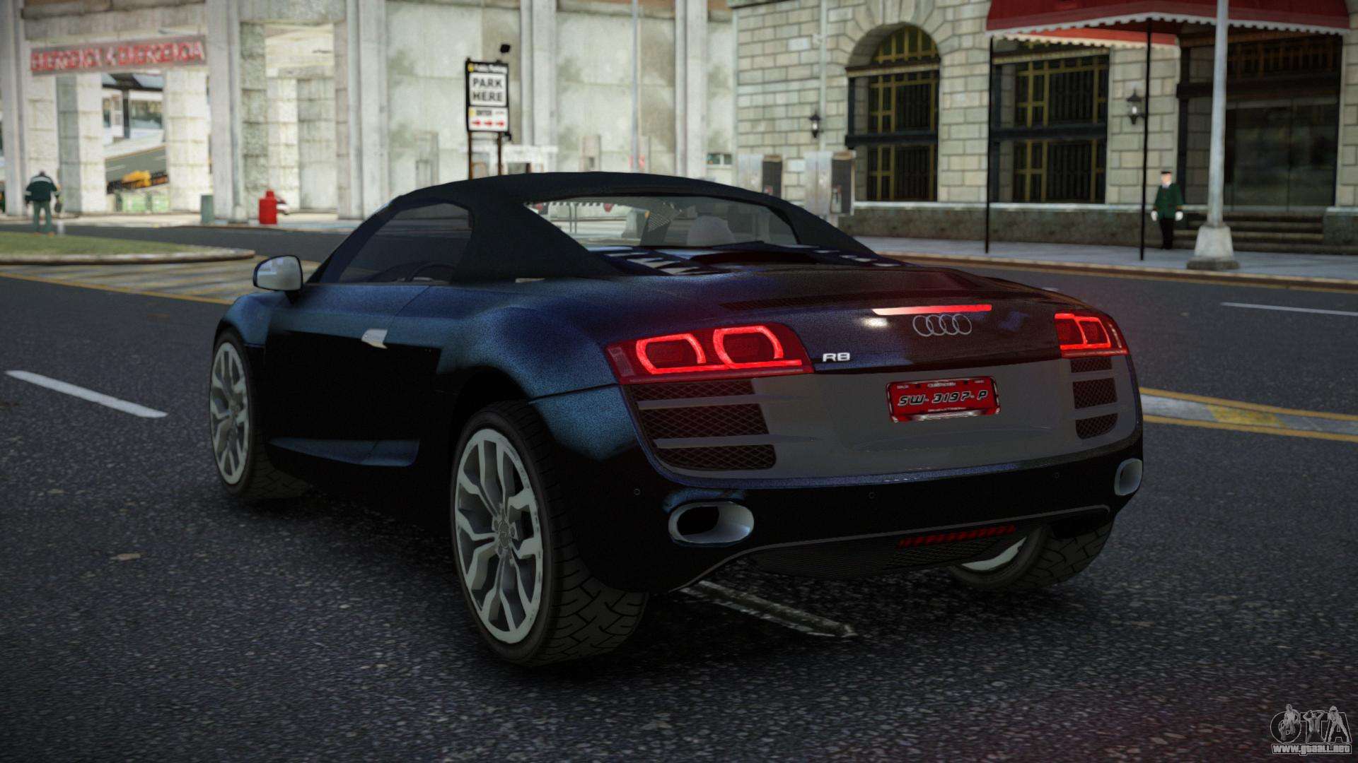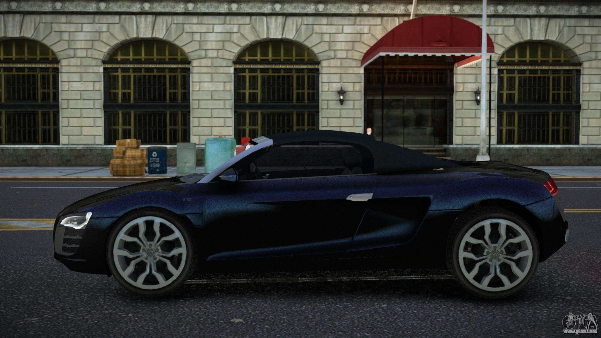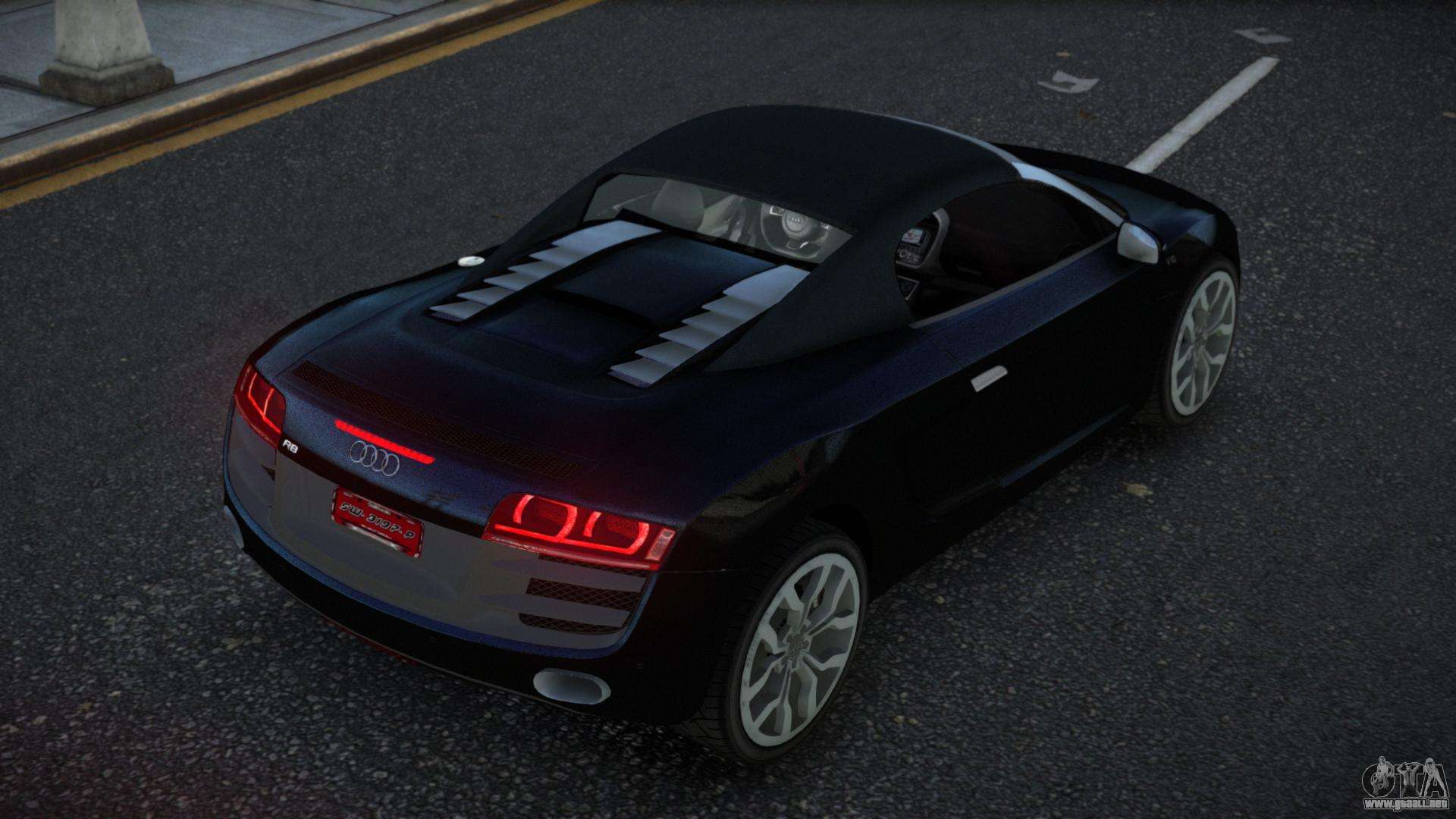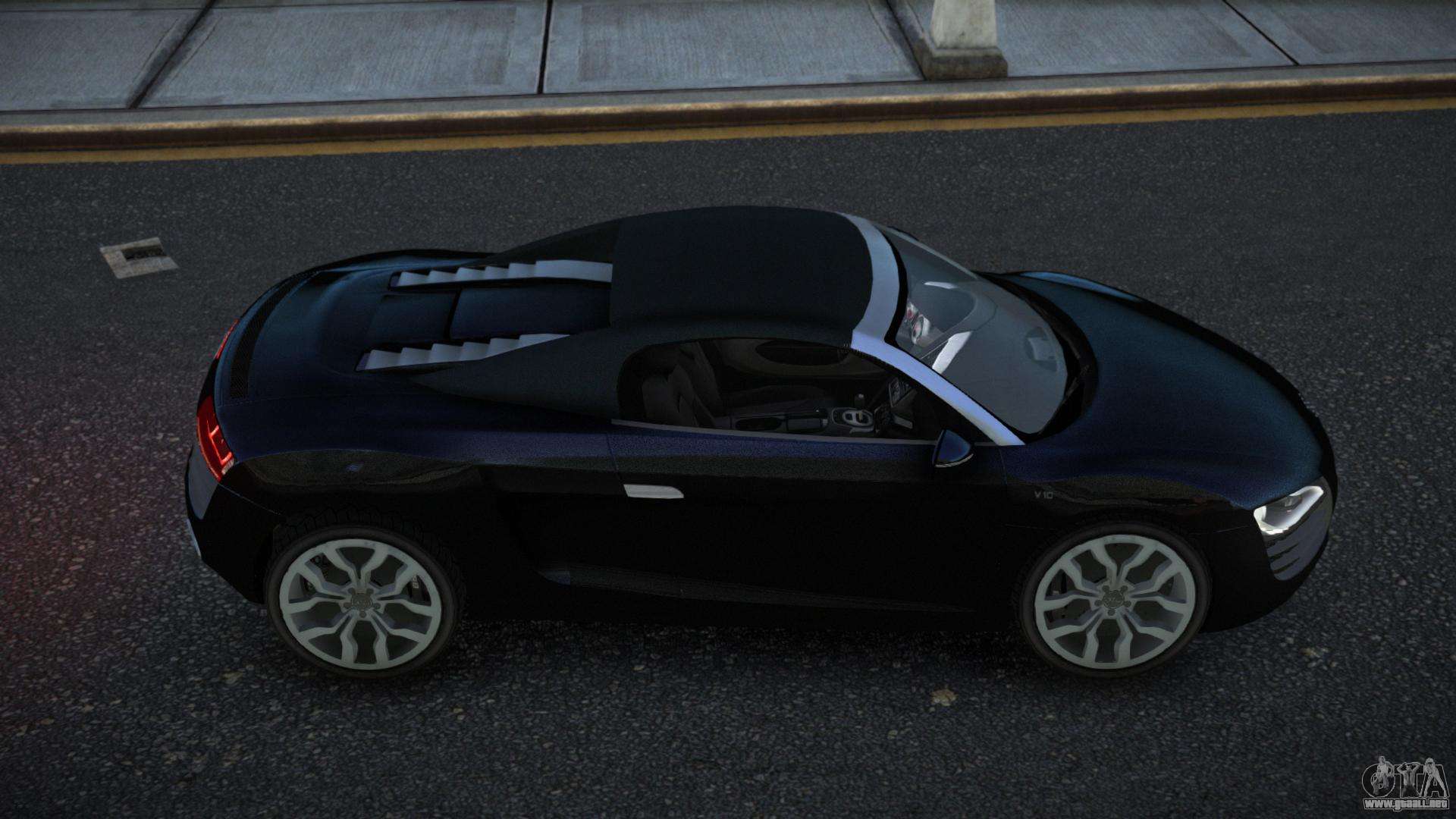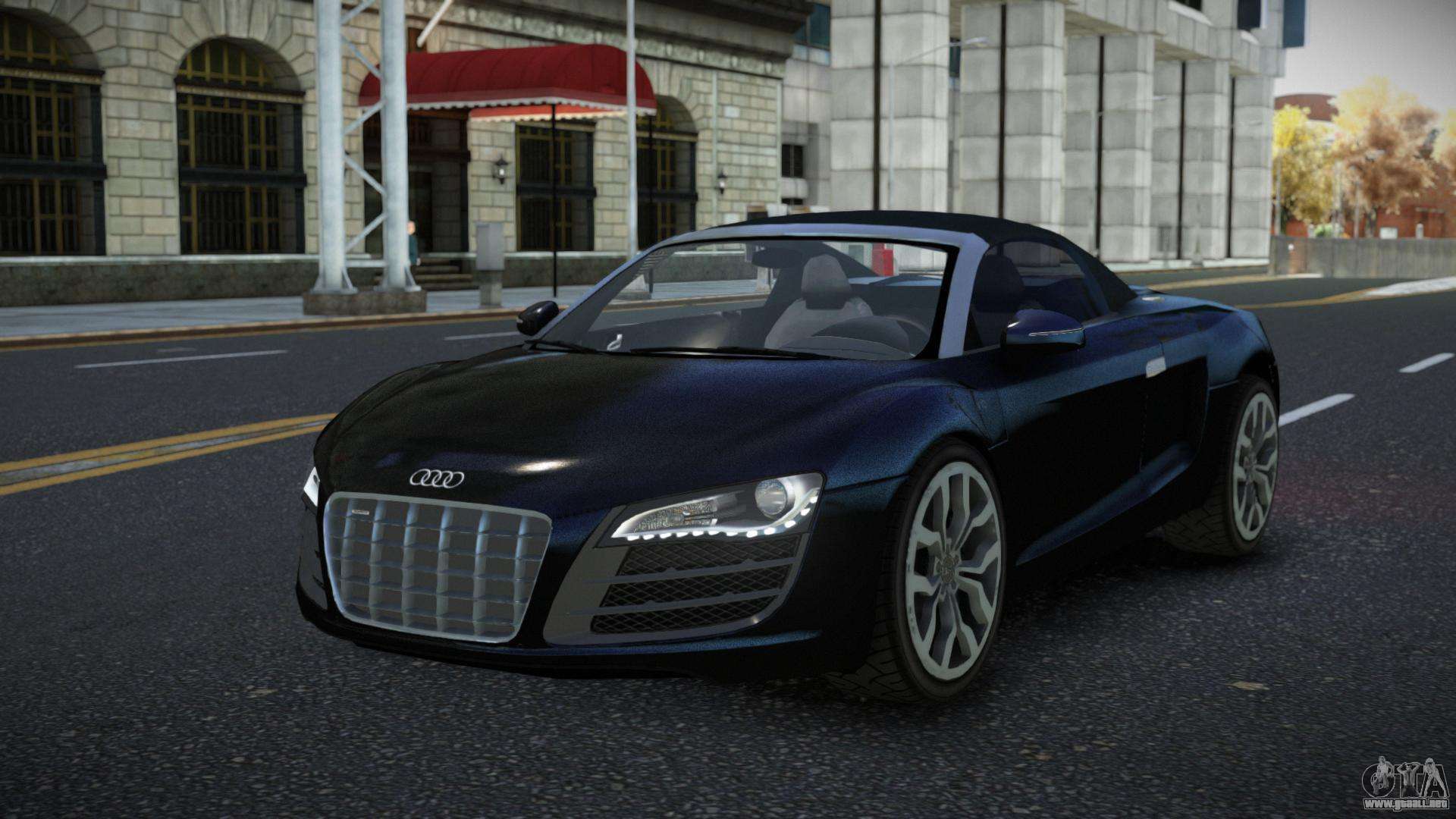Puedes apreciar todo el encanto del coche descargando el mod Audi R8 Kohtof para GTA 4 haciendo clic en los enlaces de abajo. El mod se instala automáticamente en dos clics, por defecto reemplaza a Feltzer, o elige cualquier otro vehículo del juego que quieras transformar.