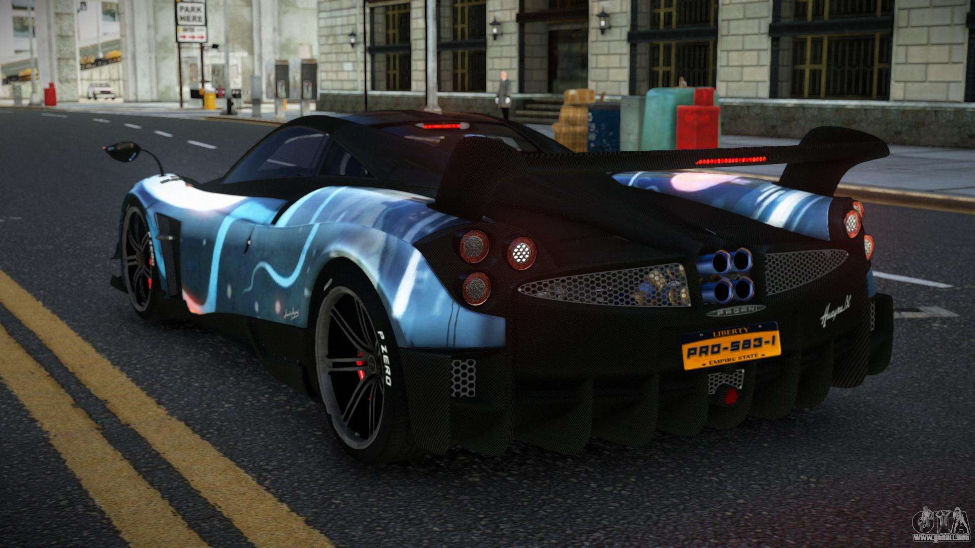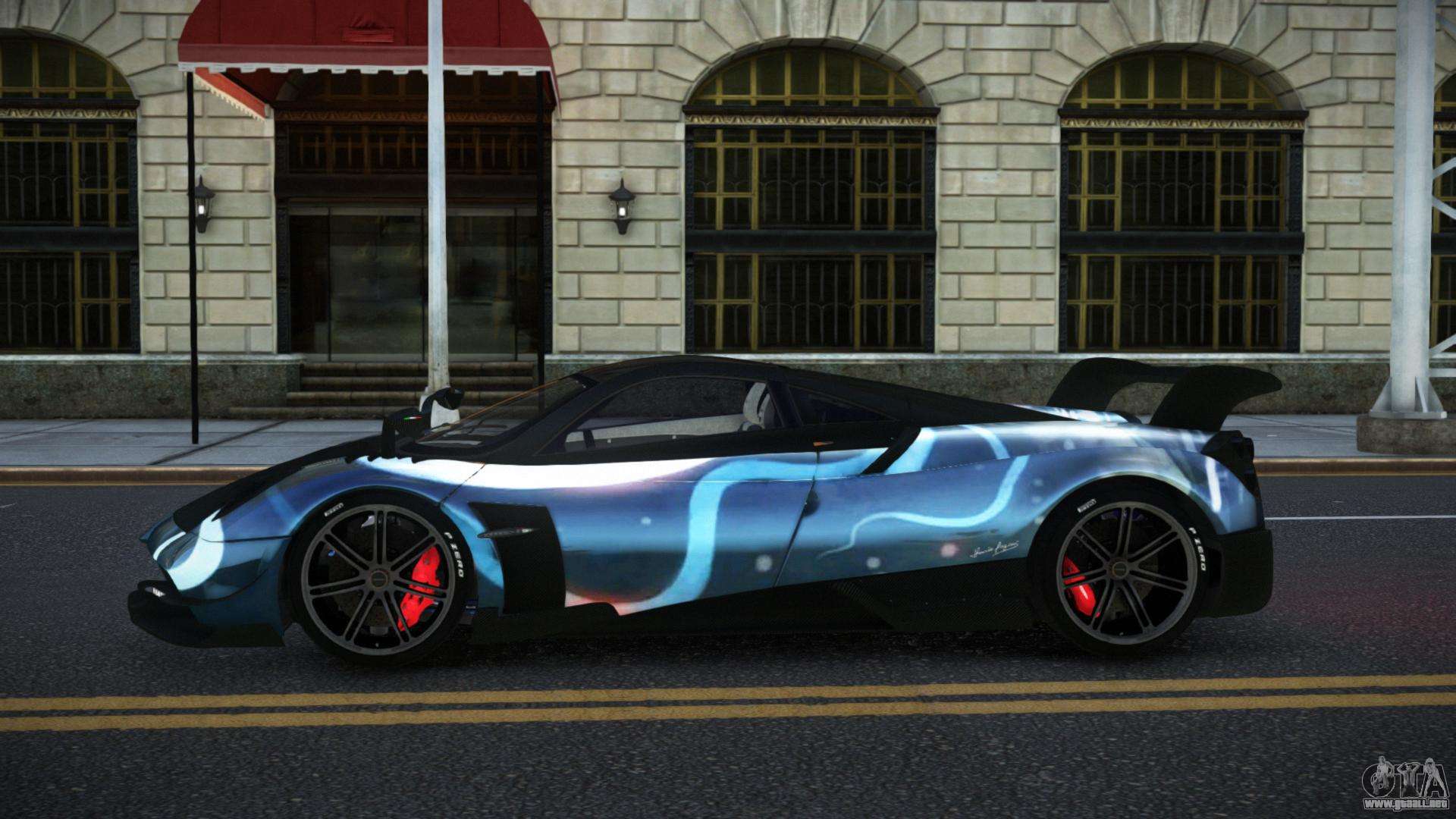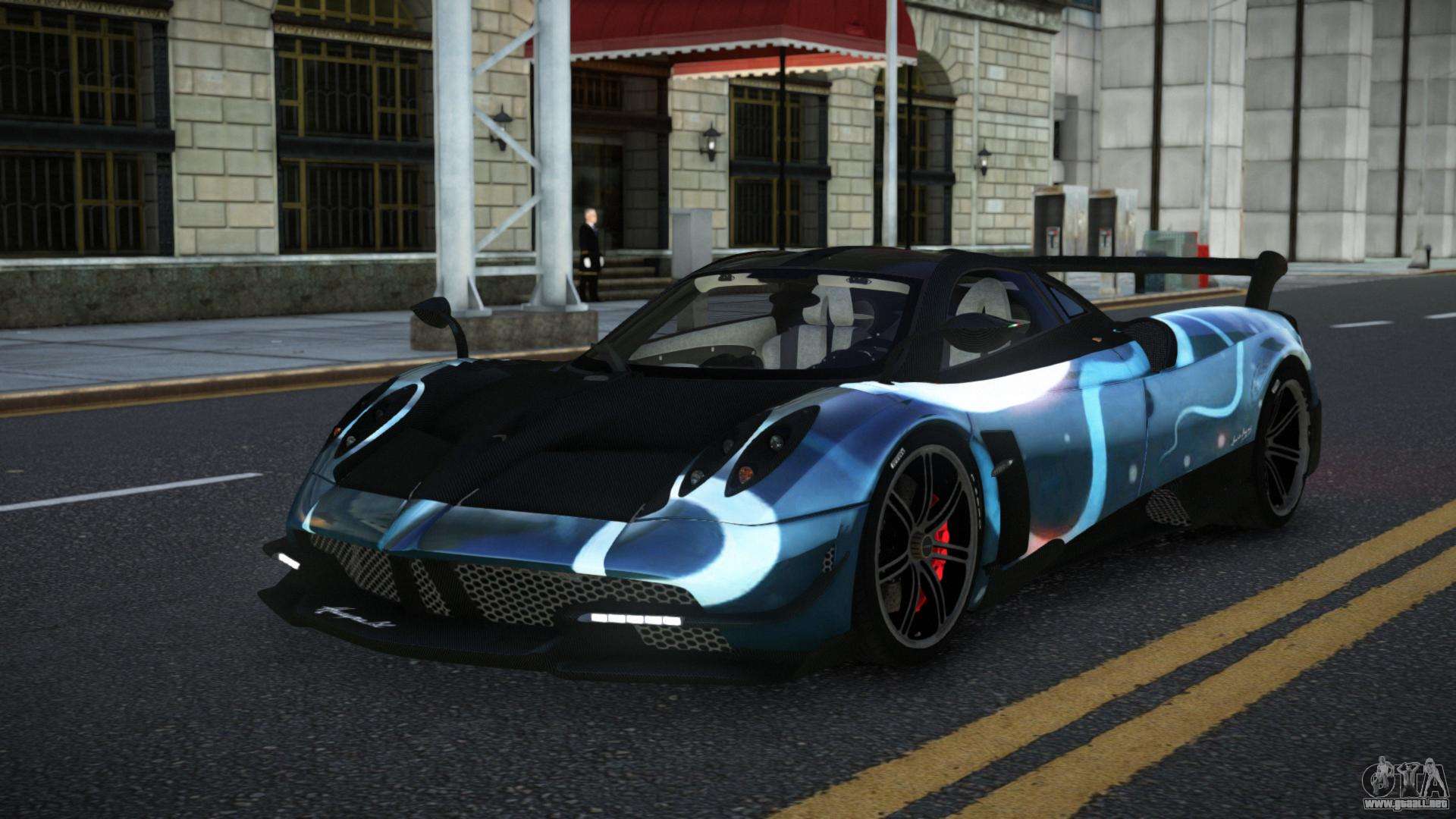 El mod Pagani Huayra Hanria S3 para GTA 4 se puede descargar a continuación en los enlaces. La modificación se instala automáticamente por defecto para reemplazar la Banshee, y con la ayuda de nuestro instalador también puedes sustituirla por cualquier vehículo estándar del juego.