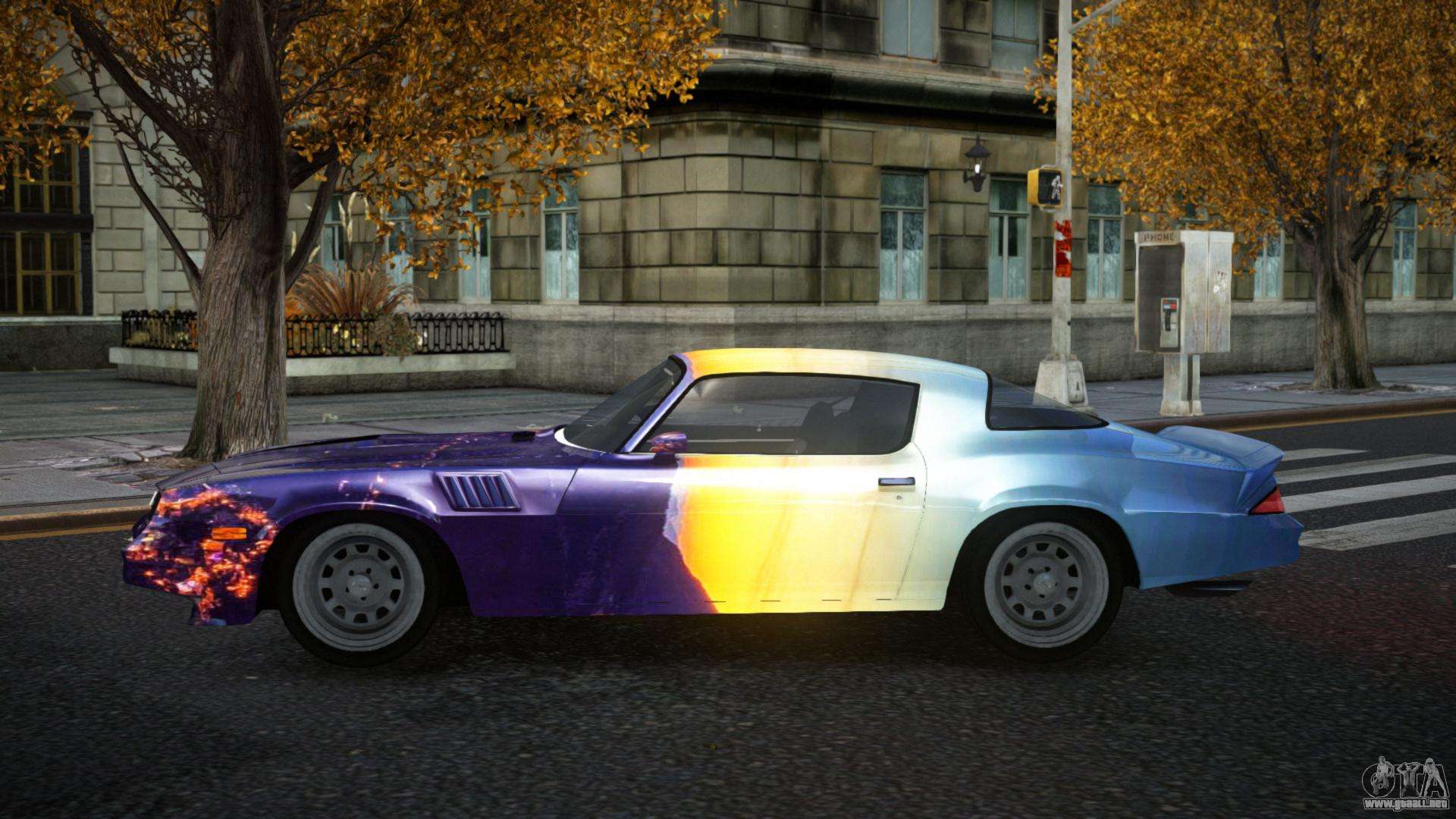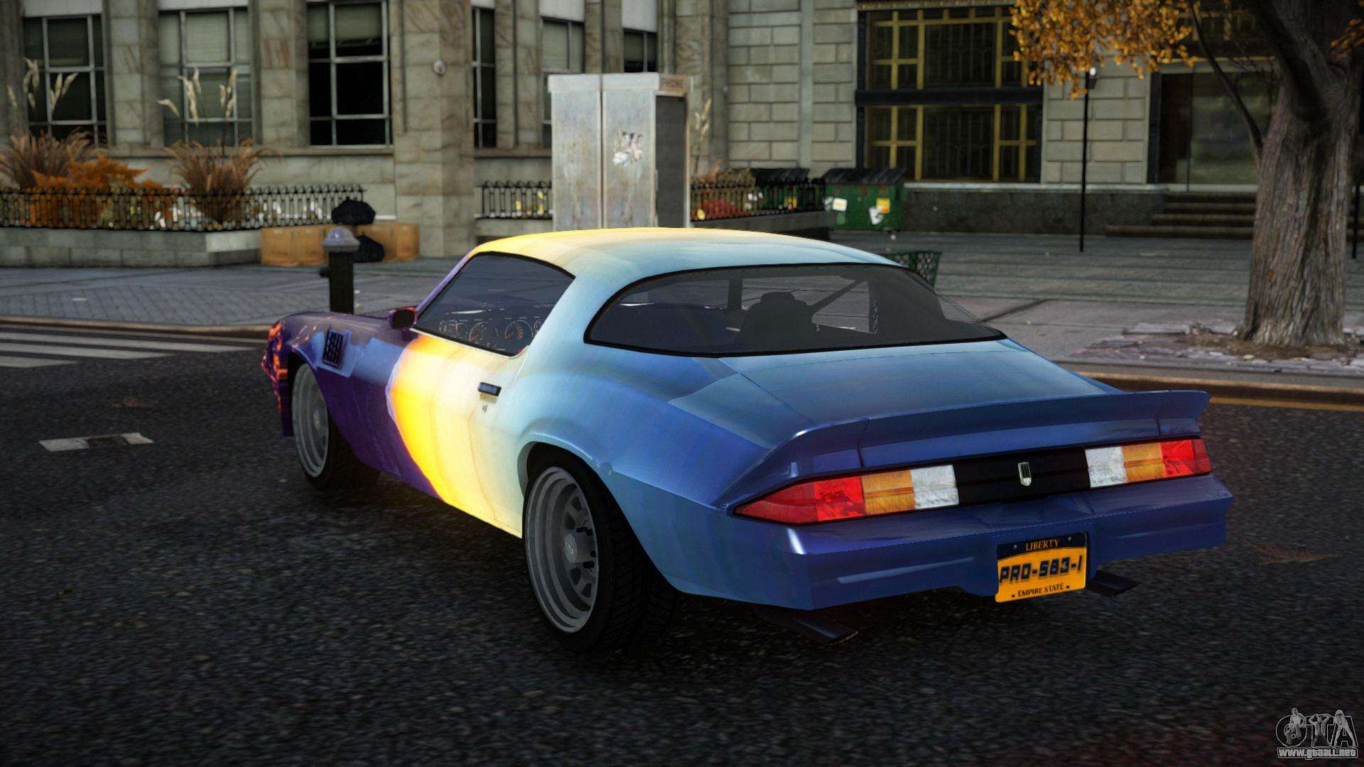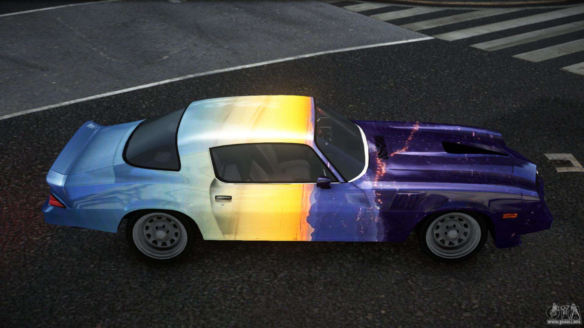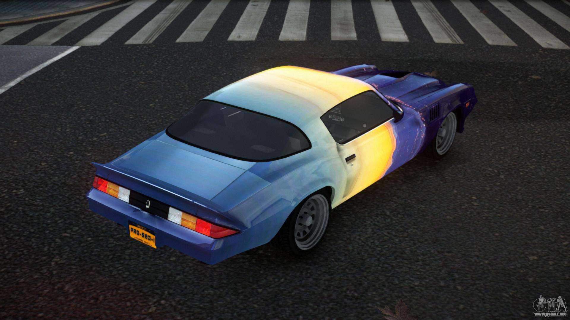 Puedes descargar gratis el mod del Chevrolet Camaro Z28 Choni S5 para GTA 4 haciendo clic en el enlace de abajo. Instalación automática, por defecto para reemplazar la Banshee, o con la ayuda del instalador puedes elegir cualquier otro coche estándar del juego.