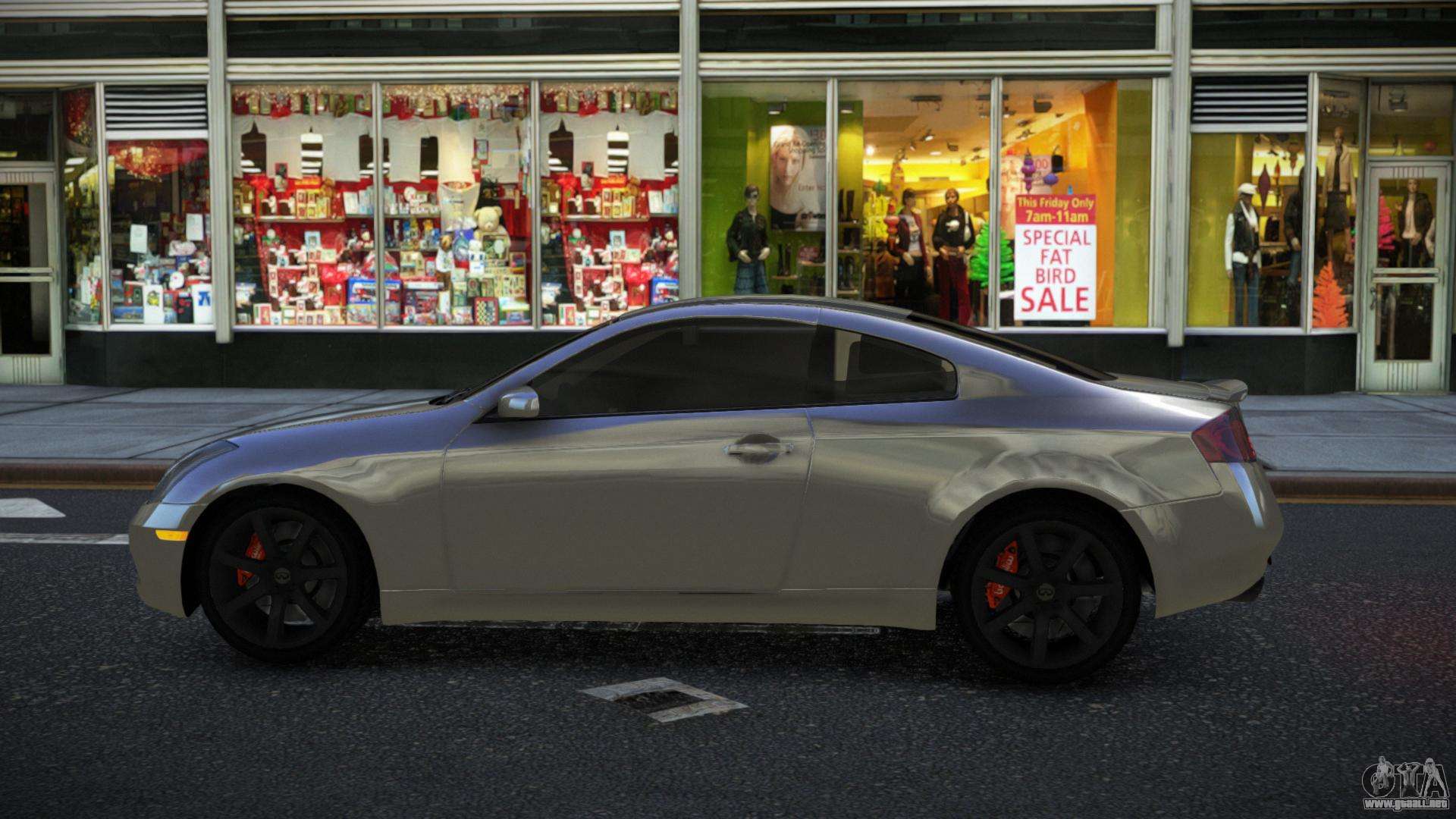 Para descargar gratis el mod Infiniti G35 Nihfuv para GTA 4, sigue los enlaces de abajo. El instalador automático reemplaza al Banshee por defecto, pero puedes elegir absolutamente cualquier vehículo estándar del juego que quieras reemplazar por un modelo nuevo.