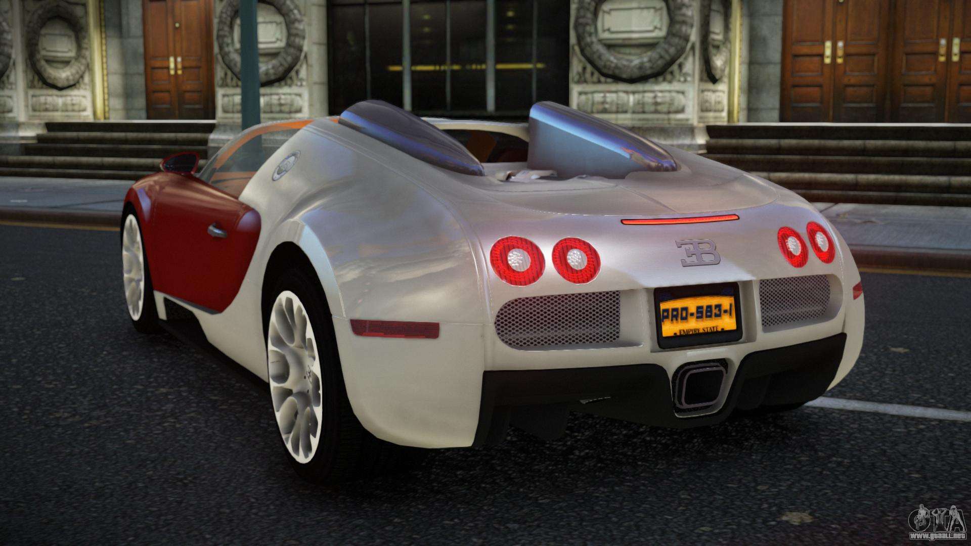 El mod Bugatti Veyron Hiwowibok para GTA 4 se puede descargar abajo en los enlaces. La modificación se instala automáticamente por defecto para reemplazar la Banshee, y con la ayuda de nuestro instalador también puedes sustituirla por cualquier vehículo estándar del juego.