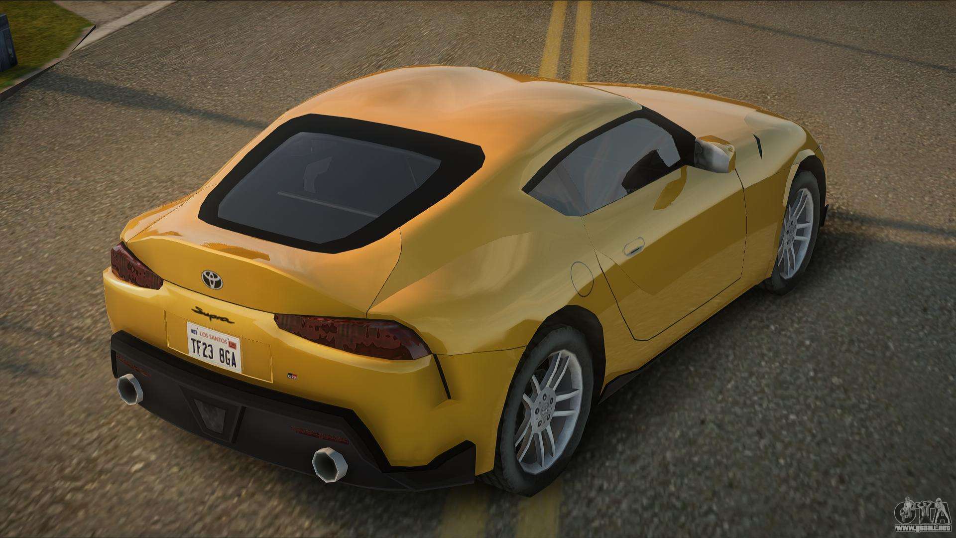El Toyota GR Supra 20th mod para GTA San Andreas se puede descargar a continuación en los enlaces. La modificación se instala automáticamente de forma predeterminada para reemplazar el Super GT, y con la ayuda de nuestro instalador, también puede reemplazarlo con cualquier vehículo de juego estándar.