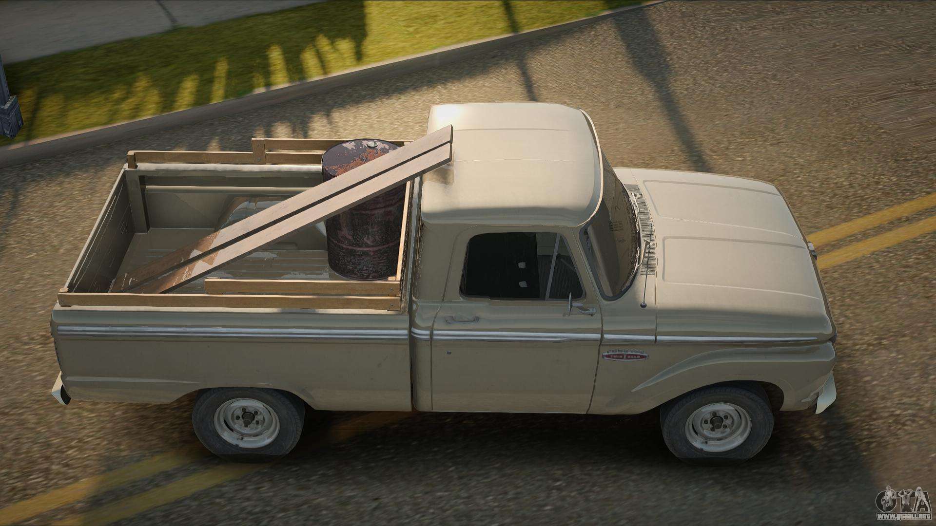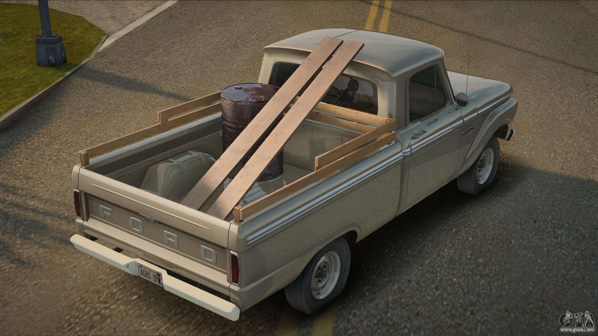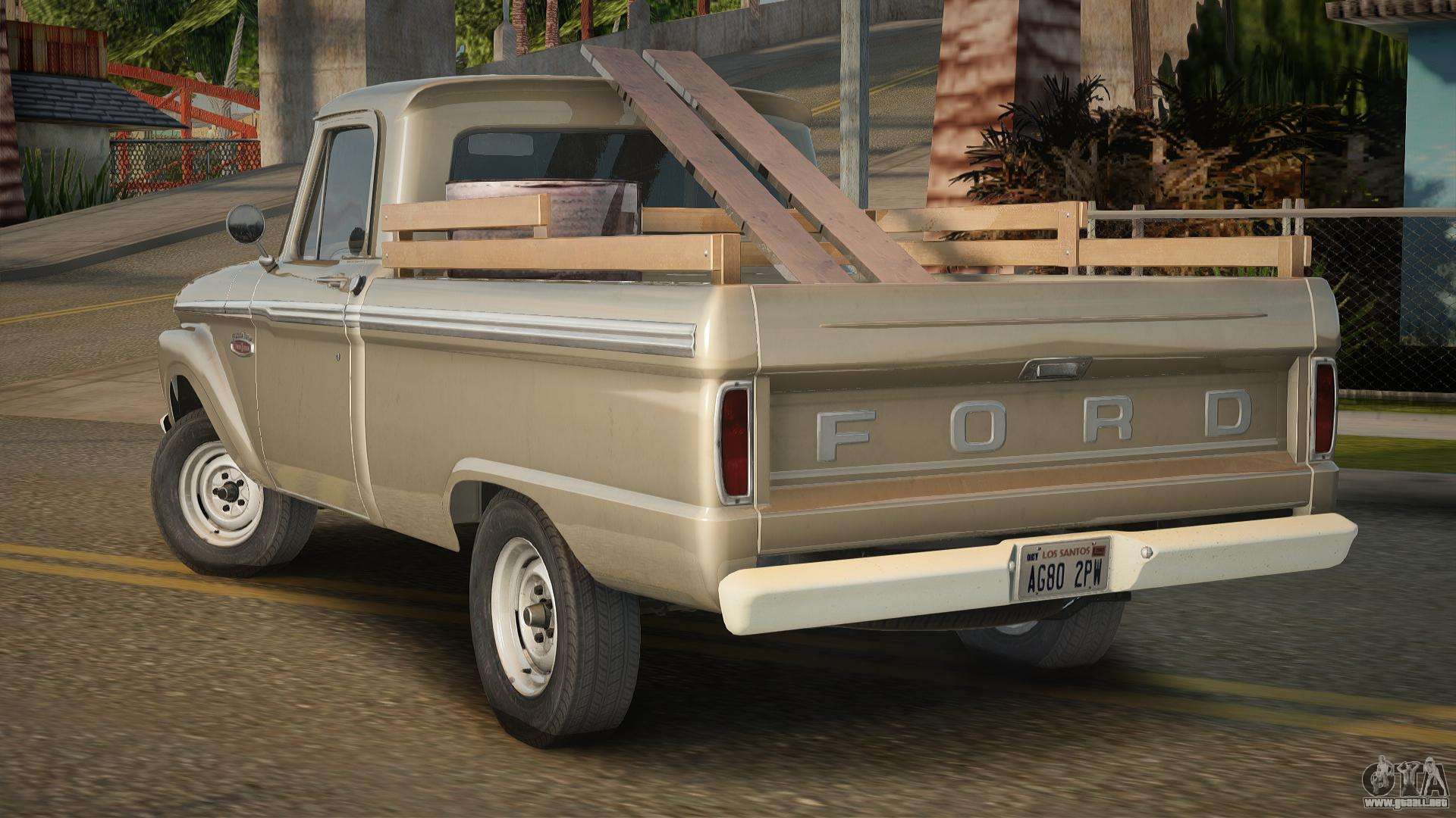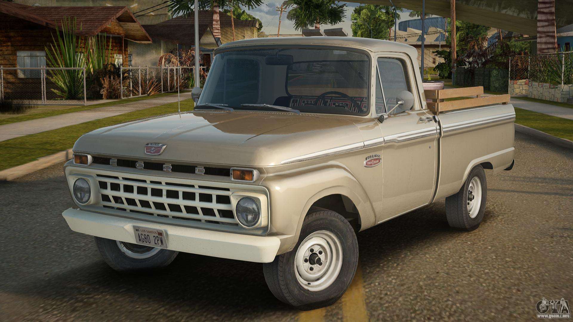Para descargar el mod de automóvil Ford F-100 de 1965-1966 para GTA San Andreas de forma gratuita, solo necesita hacer clic en los enlaces en la parte inferior de la página. Nuestro instalador automático te ayudará a instalar el mod para reemplazar el Sadler en dos clics, o puedes elegir cualquier otro vehículo estándar en el juego.