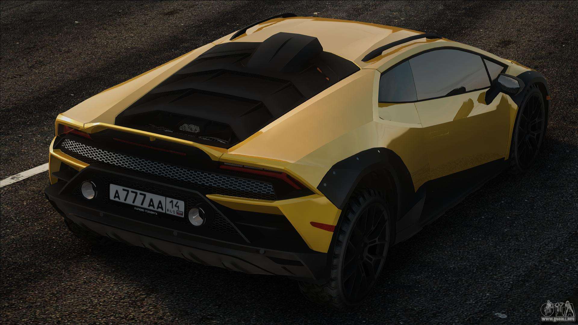 Coche de calidad - Lamborghini Huracan Sterrato para GTA San Andreas. La carrocería y el interior del modelo están bien detallados. ¡El coche encaja perfectamente en el juego!