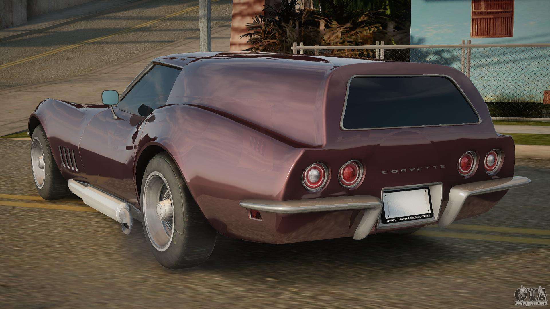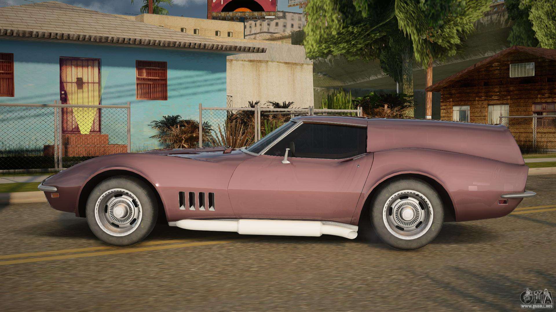 Puede apreciar todo el encanto del automóvil descargando el mod Chevrolet Corvette C3 WG7 para GTA San Andreas haciendo clic en los enlaces a continuación. El mod se instala automáticamente en dos clics, por defecto sustituye a Buccaneer, o elige cualquier otro vehículo del juego que quieras transformar.