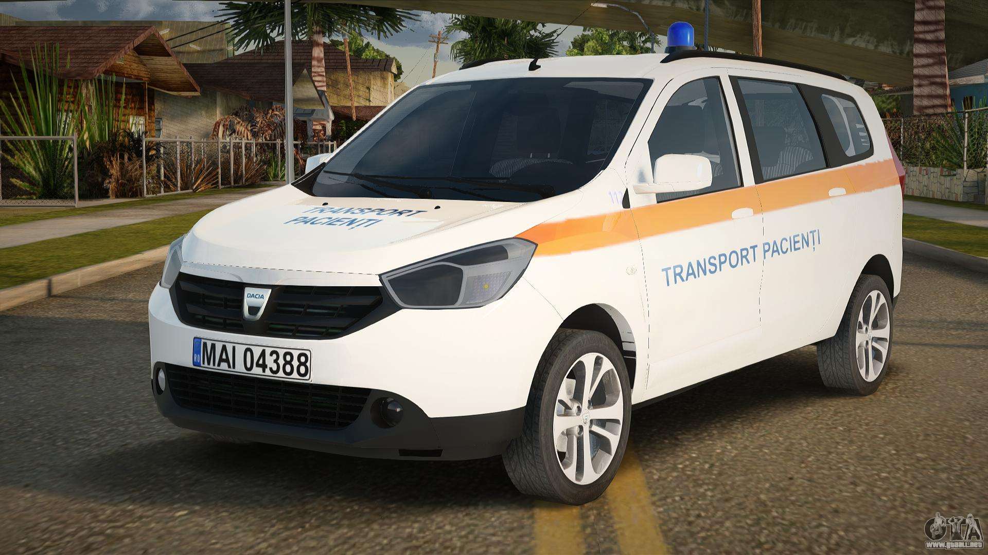 Puede descargar el mod Dacia Lodgy Transport Pacienti para GTA San Andreas a continuación en los enlaces. La modificación se instala automáticamente de forma predeterminada para reemplazar el Rancher y, con la ayuda de nuestro instalador, puede reemplazarlo con cualquier vehículo de juego estándar.