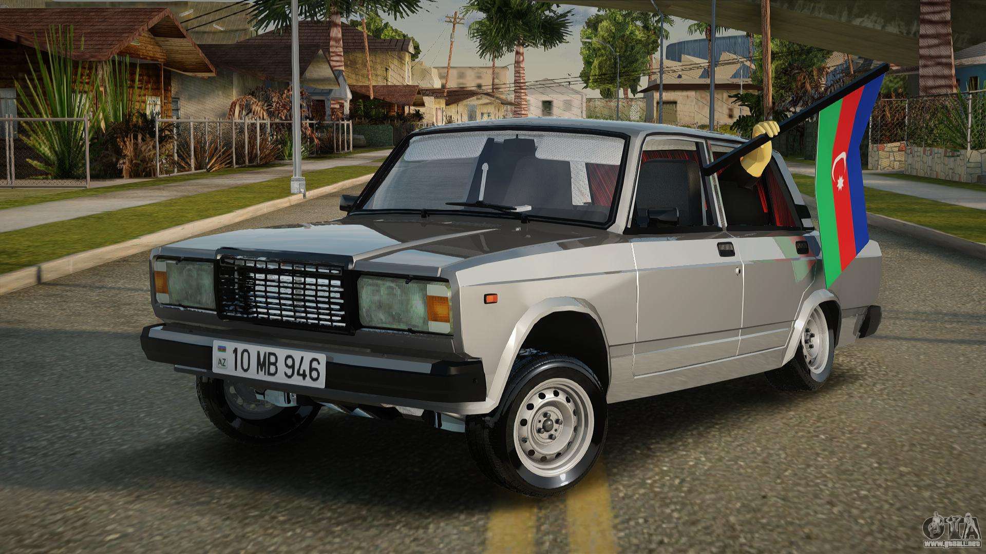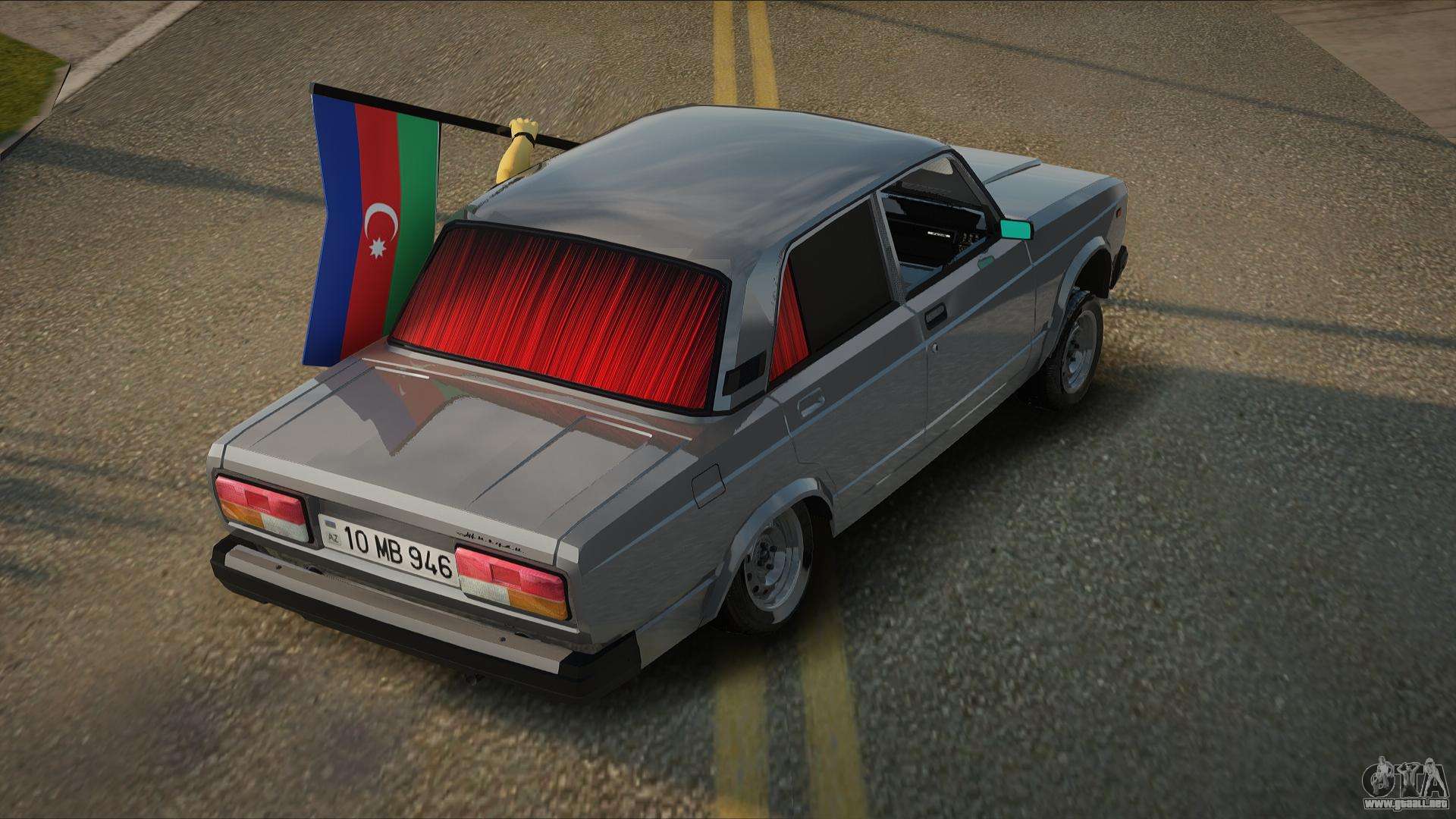 Mod VAZ 2107 Avtosh Azerbaijan Flag para GTA San Andreas se puede descargar a continuación en los enlaces. La modificación se instala automáticamente de forma predeterminada para reemplazar el Almirante, y con la ayuda de nuestro instalador también puede reemplazarlo con cualquier vehículo de juego estándar.