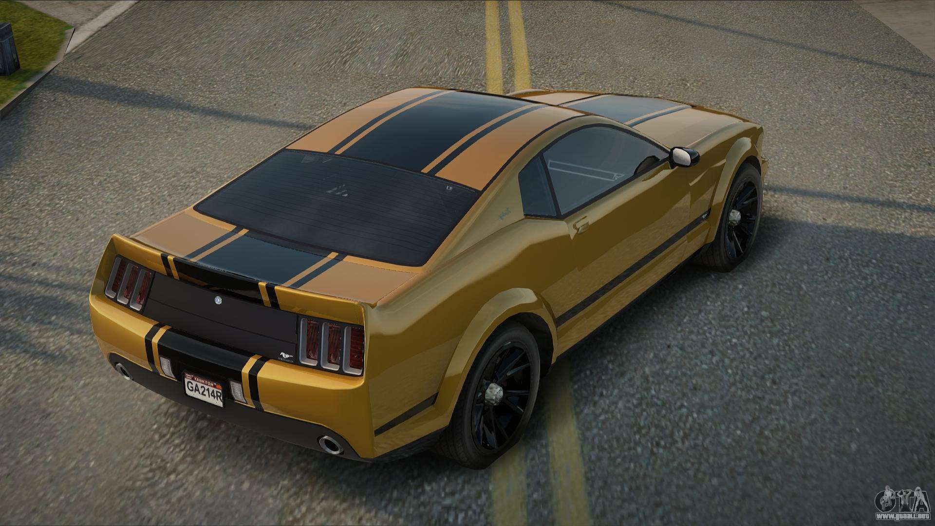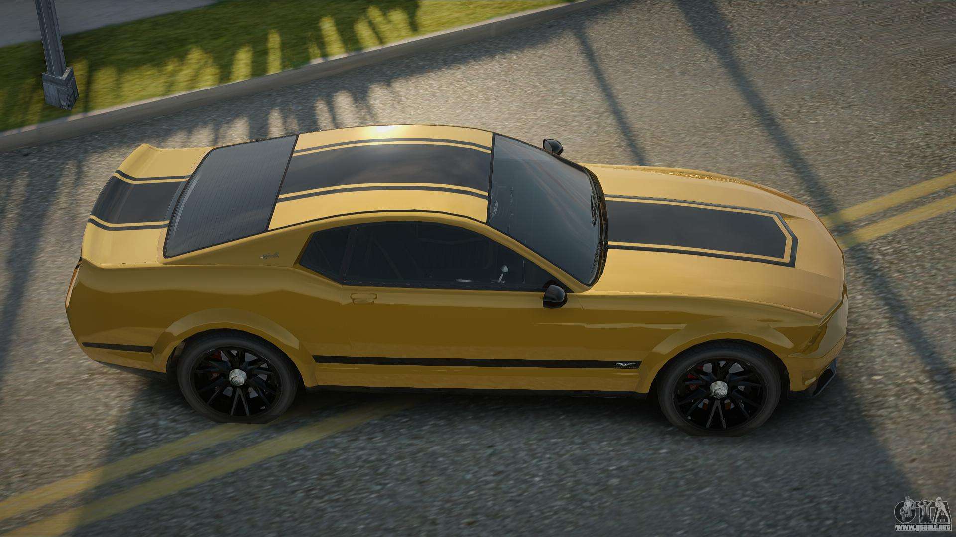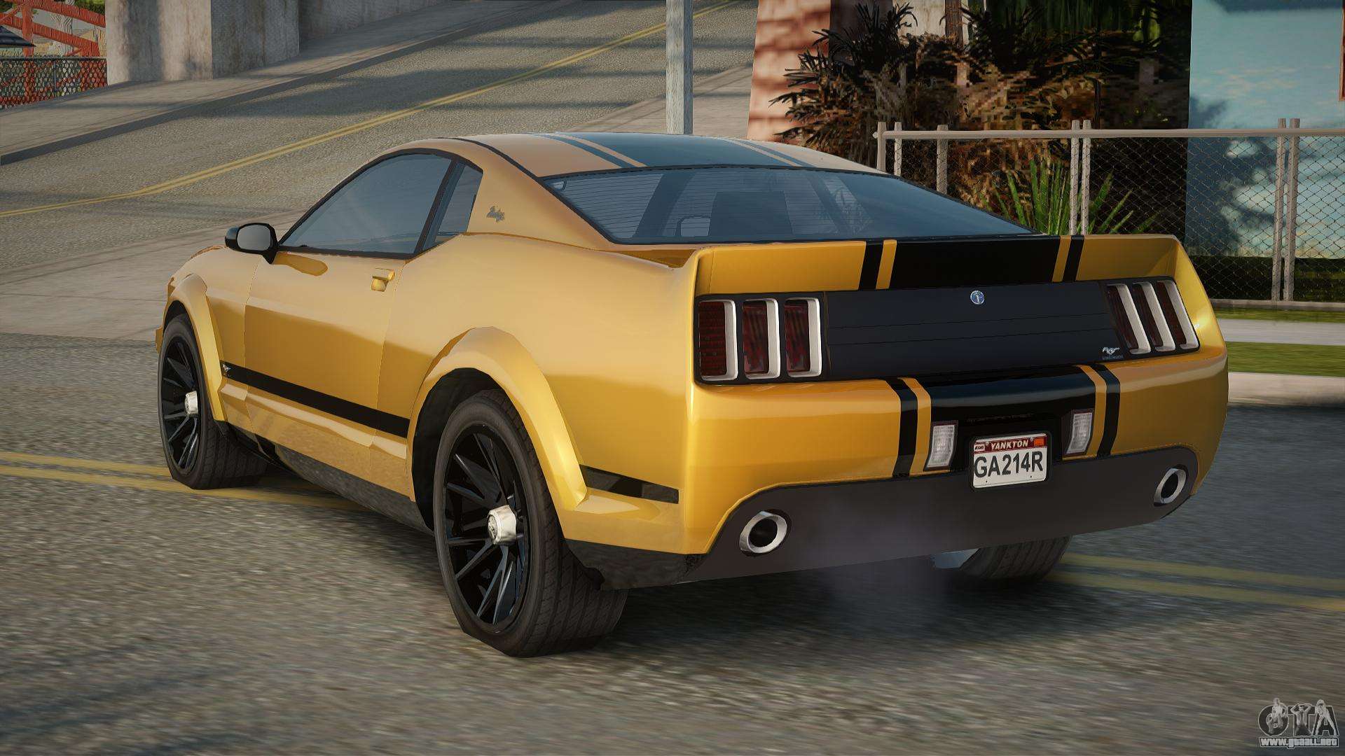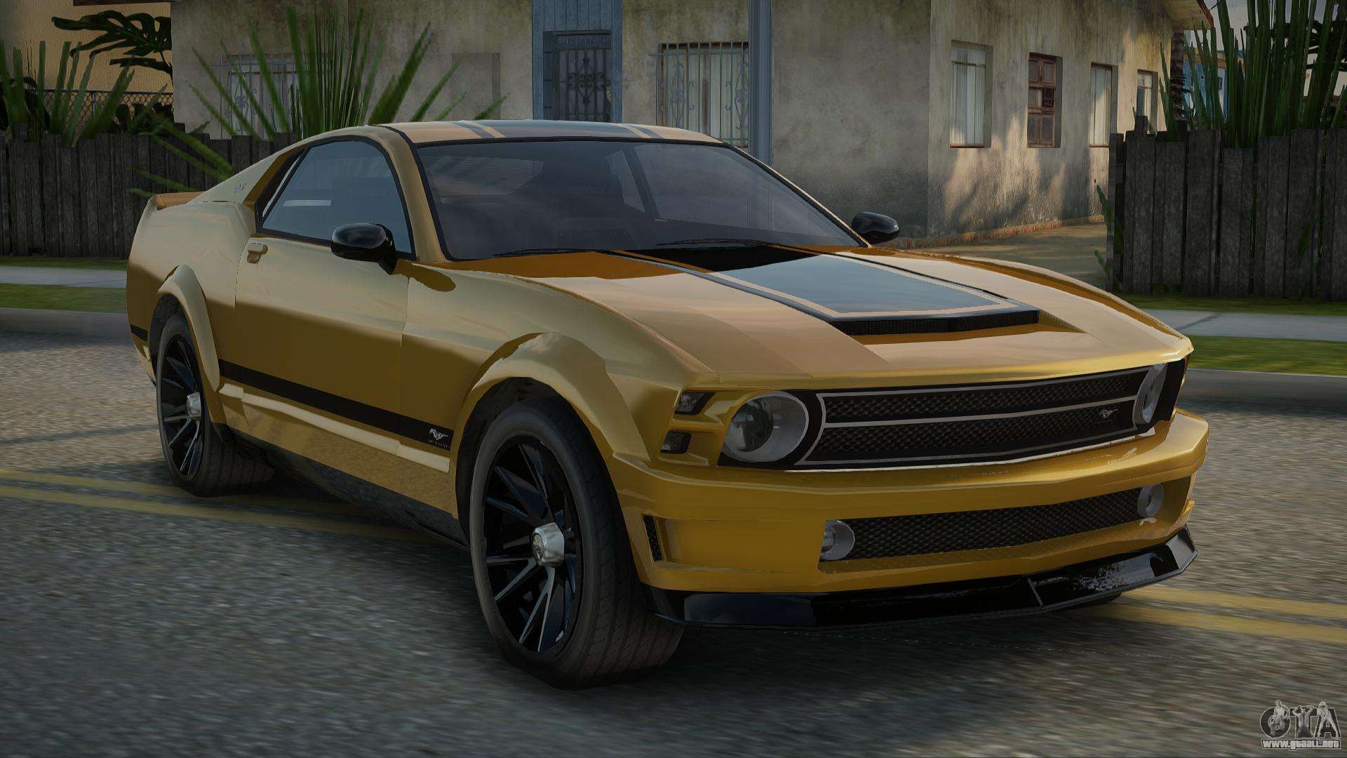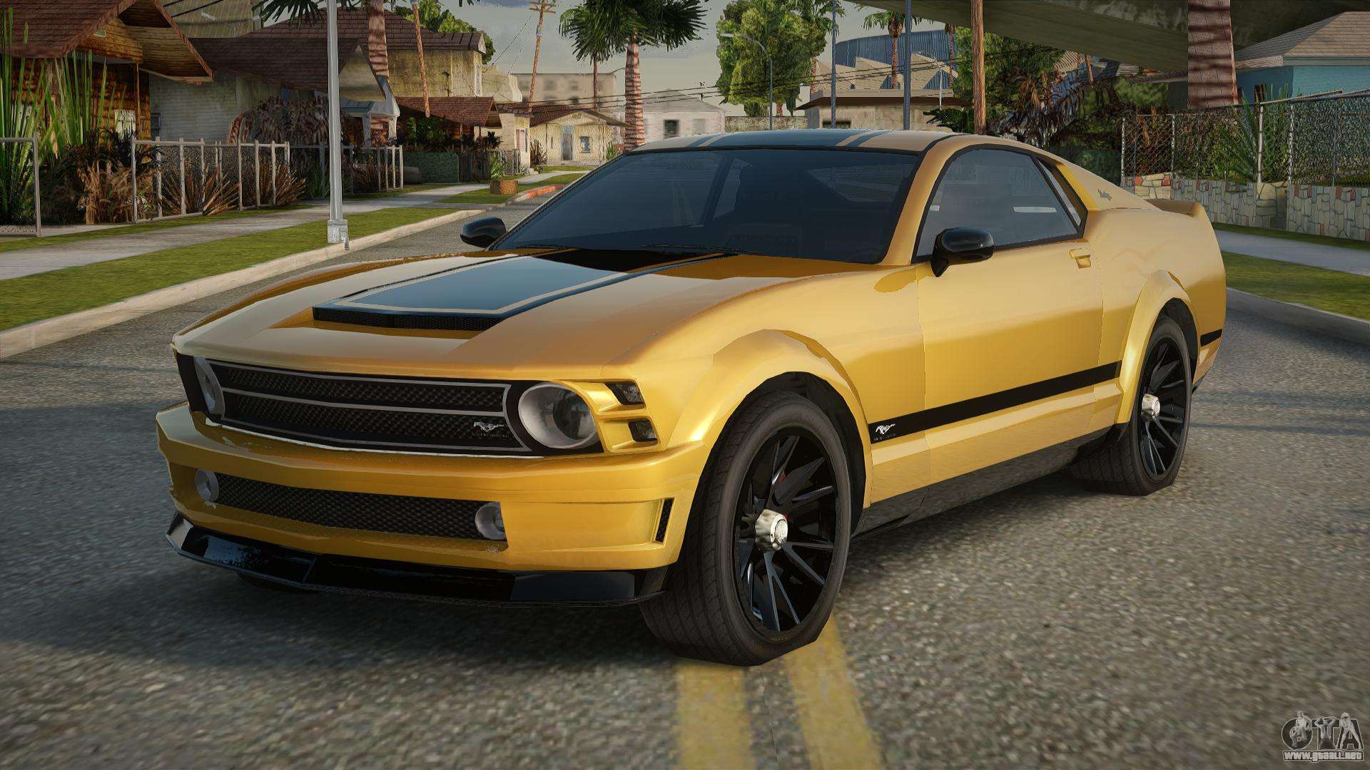 Puedes descargar gratis el mod del Ford Mustang GT V1.0 de GTA San Andreas de 2008 haciendo clic en el enlace de abajo. Instalación automática, por defecto para reemplazar a Previon, o con la ayuda del instalador puedes elegir cualquier otro coche estándar del juego.