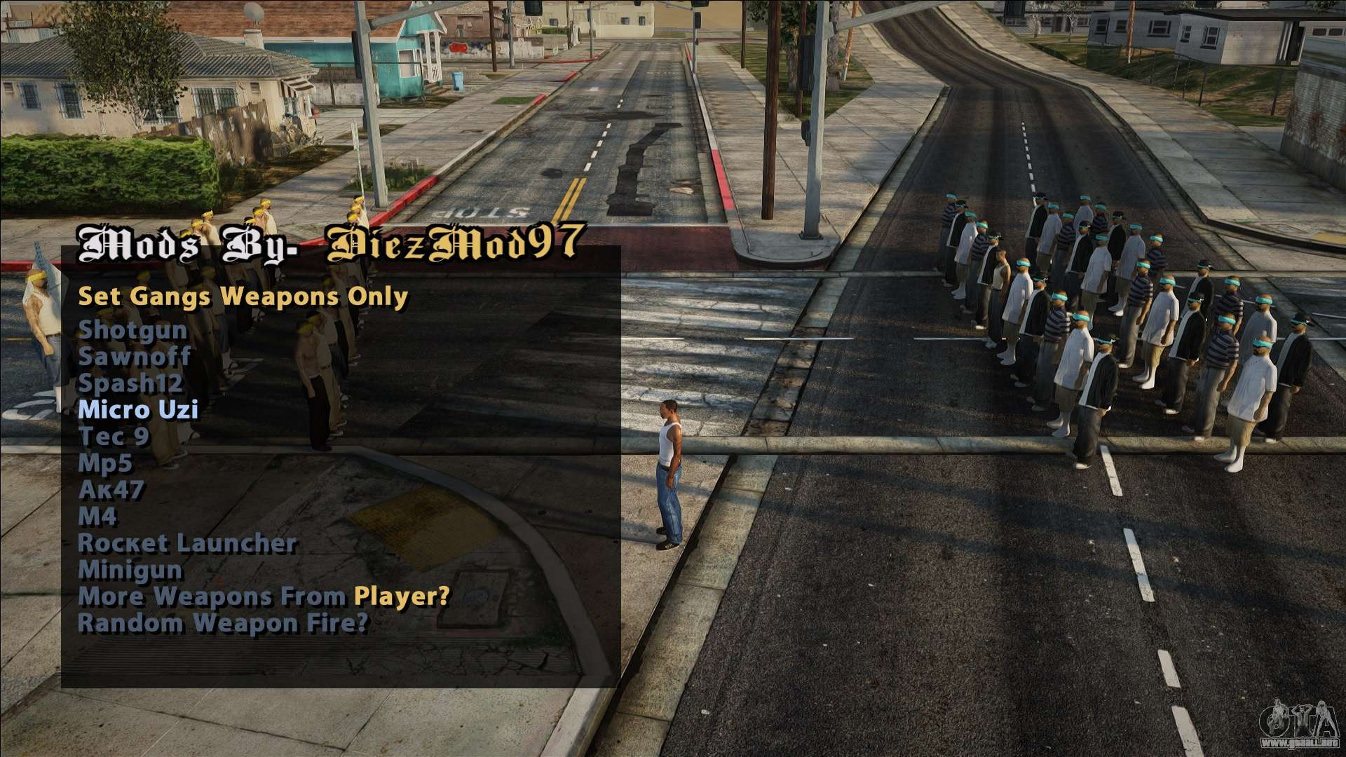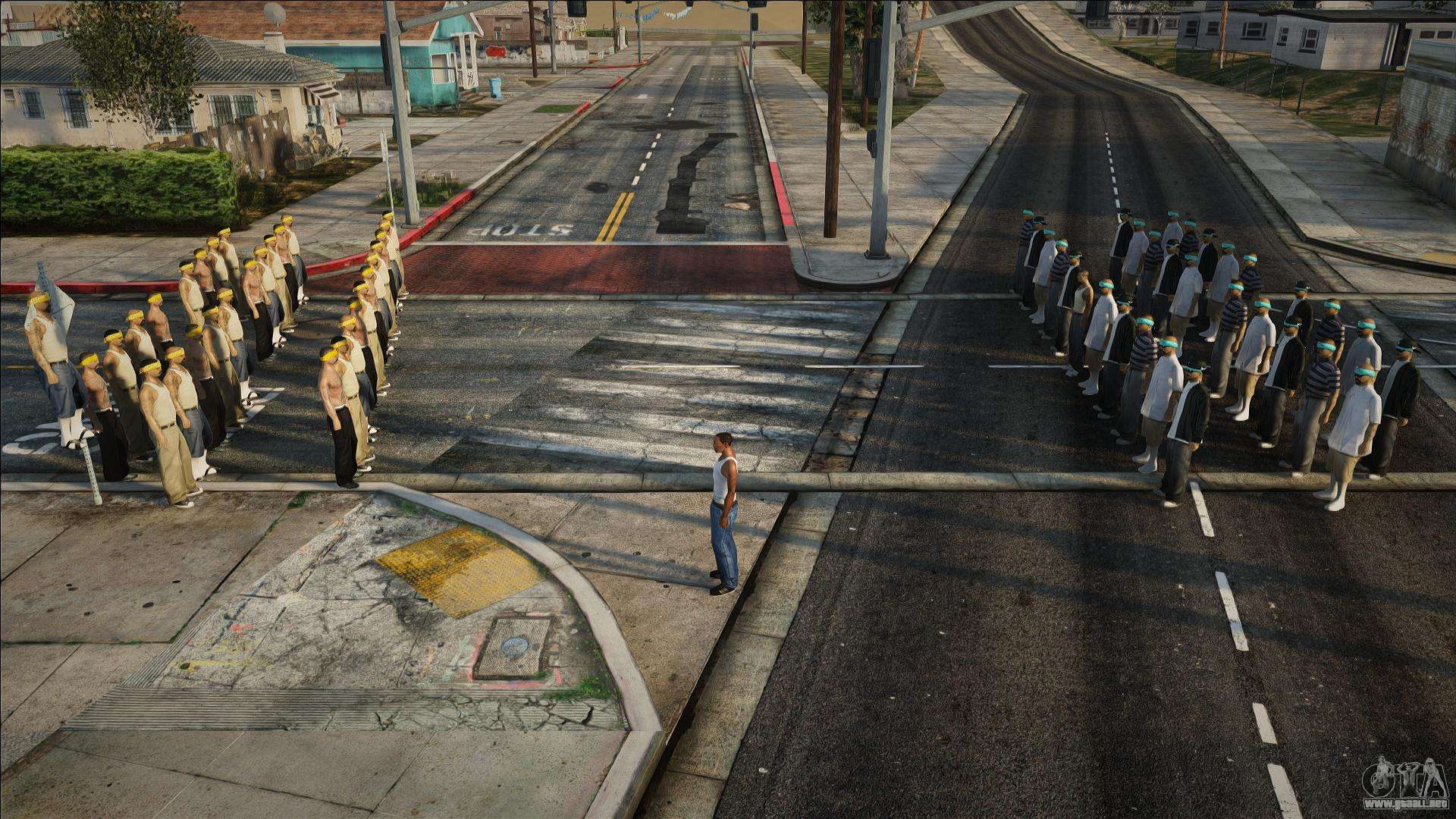 Guion de alta calidad - Street Gang Wars (30 vs 30) para GTA San Andreas. El script añadirá la capacidad de crear una masacre de bandas.
