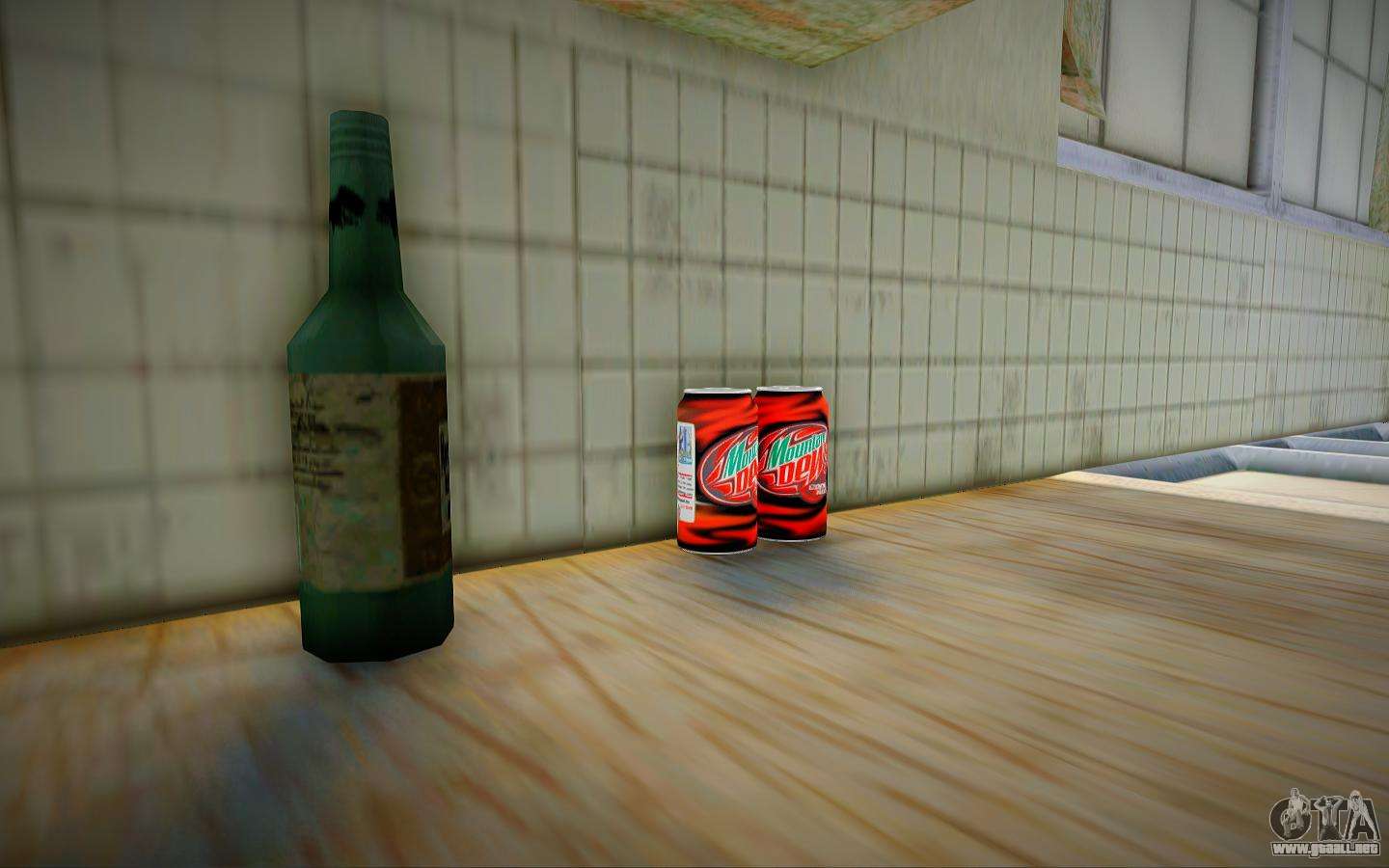 Modificación de rocío de montaña para GTA San Andreas. Un mod que reemplaza las botellas en la casa de Carl con latas. Las latas tienen modelos y texturas de buena calidad. Encajar en la atmósfera del juego. No se encontraron errores o errores durante las pruebas.
