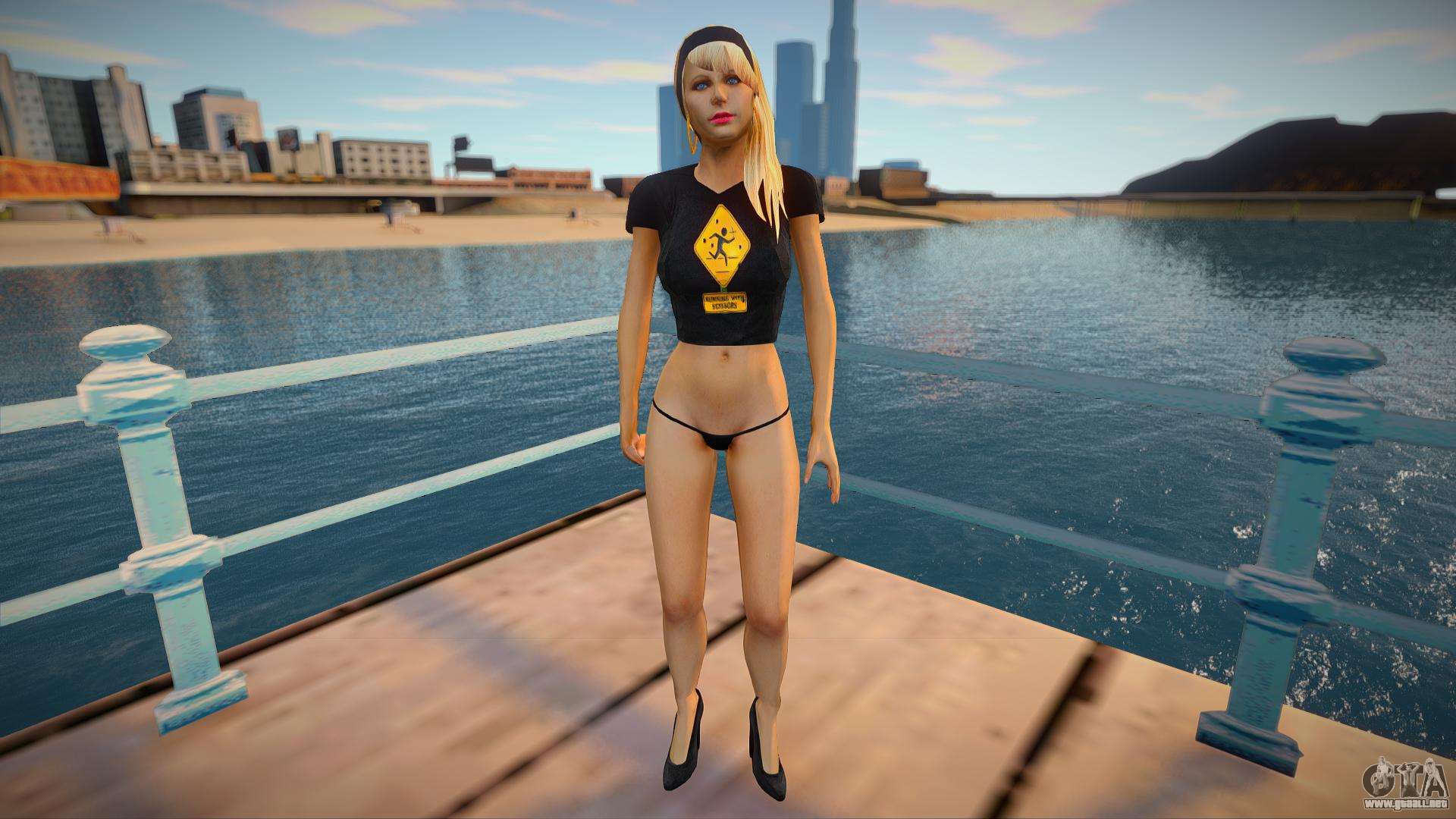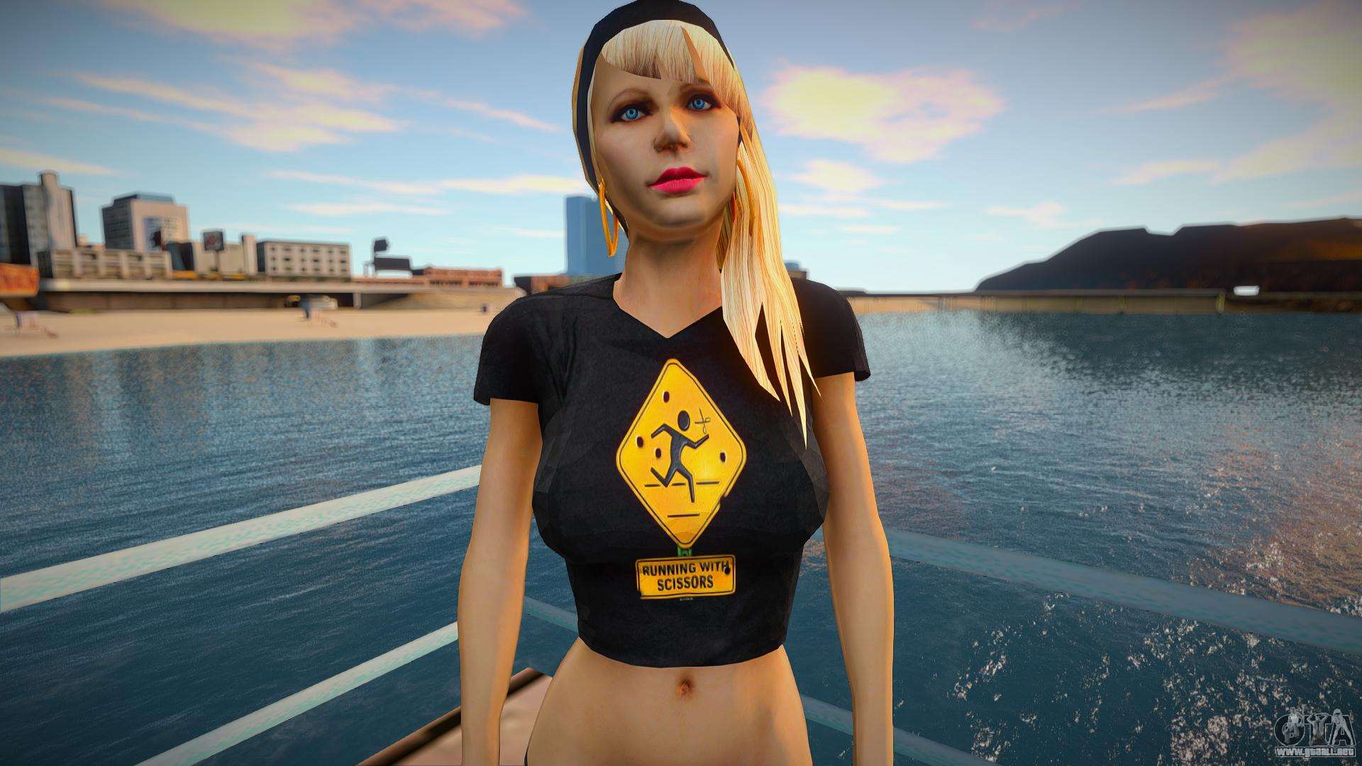 Buena piel de rubia bonita - Postal Babe para GTA San Andreas. ¡Ahora no te aburrirás, porque siempre tendrás esta piel! Esta piel tiene un modelo y textura de calidad, así como un esqueleto en movimiento. Sin errores. Disfruta de la descarga.