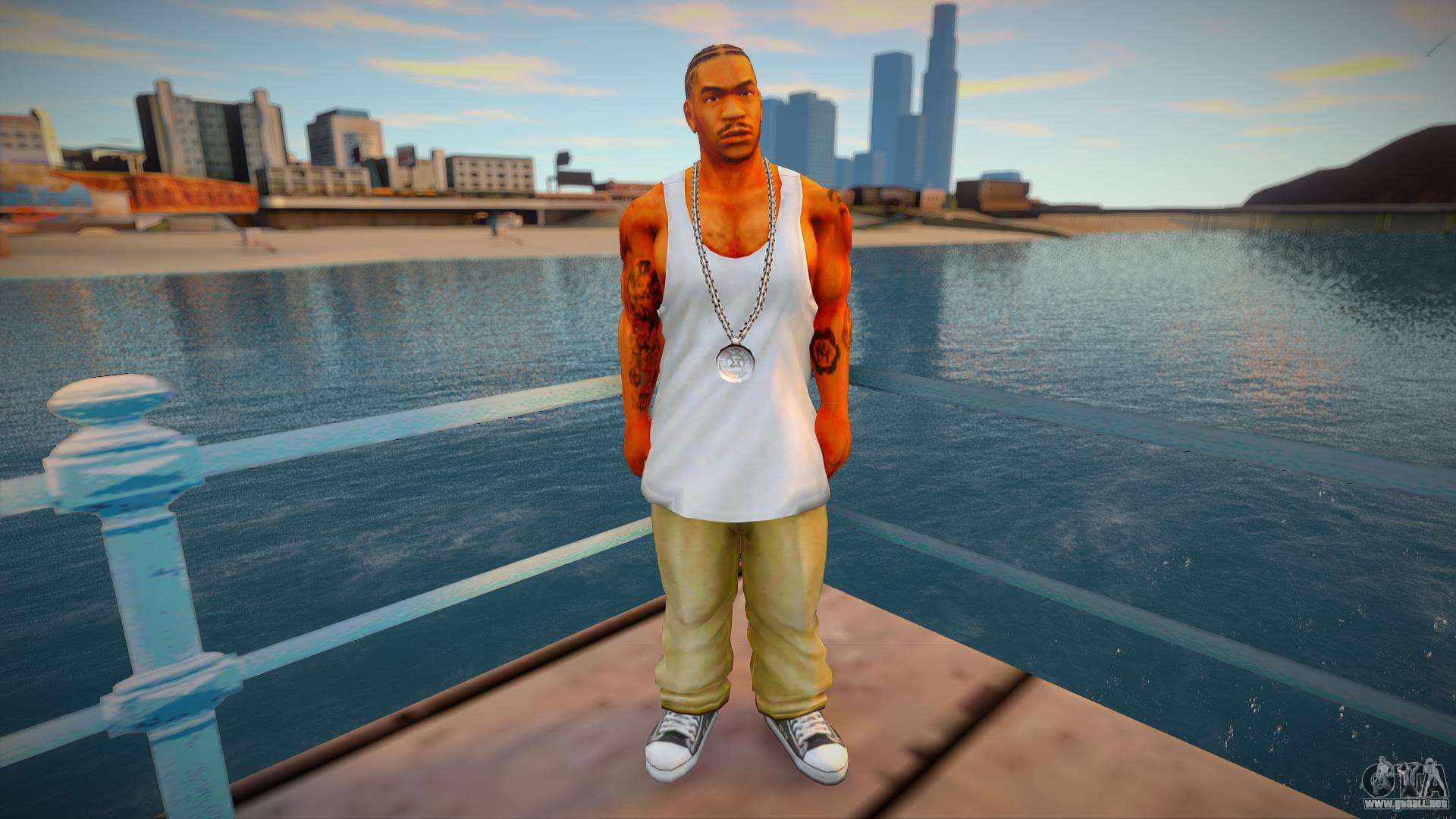 Famoso rapero estadounidense - Xzibit camiseta blanca para GTA San Andreas. ¡Ahora no te aburrirás, porque siempre tendrás esta piel! Esta piel tiene un modelo y textura de calidad, así como un esqueleto en movimiento. Sin errores.