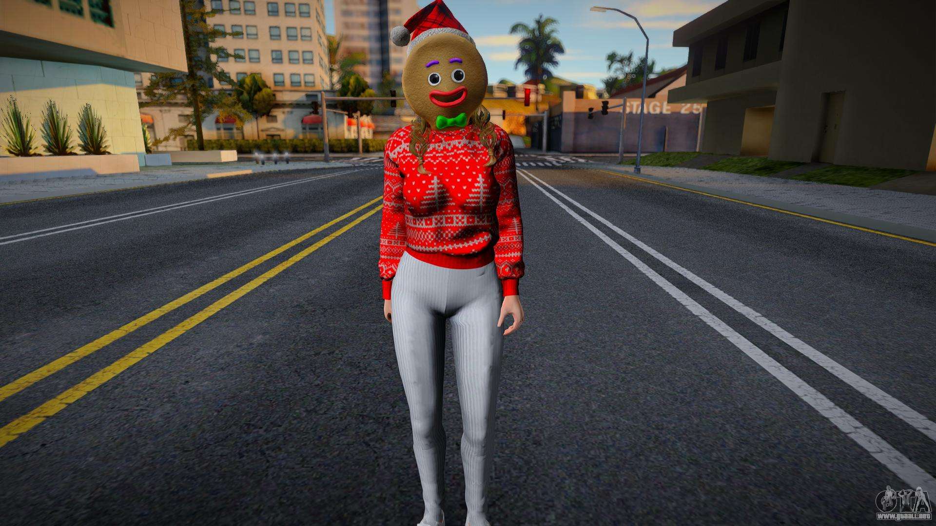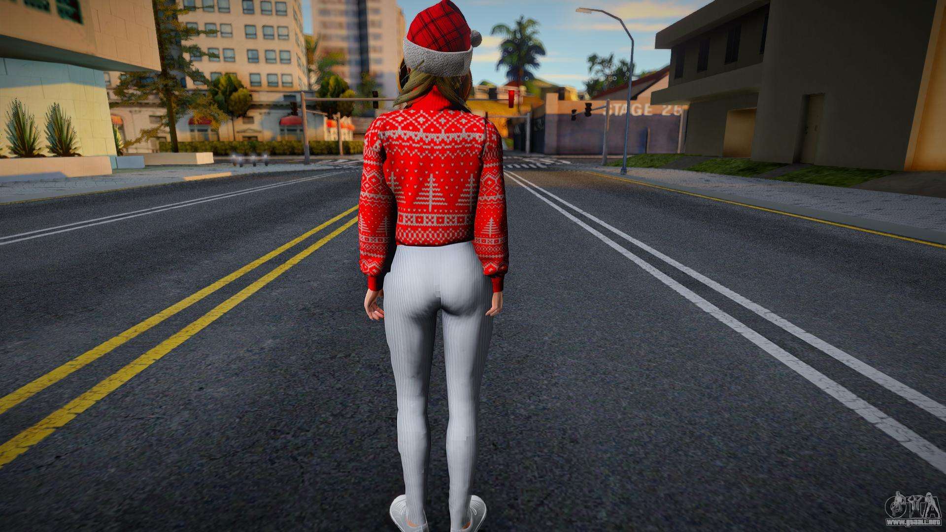 No es una mala skin - Monica - Jersey de Navidad Leggings de punto v2 para GTA San Andreas. ¡Una hermosa piel seguramente encajará en tu juego y atraerá a los residentes del estado! Esta modificación tiene un modelo y texturas de alta calidad, así como un esqueleto móvil.